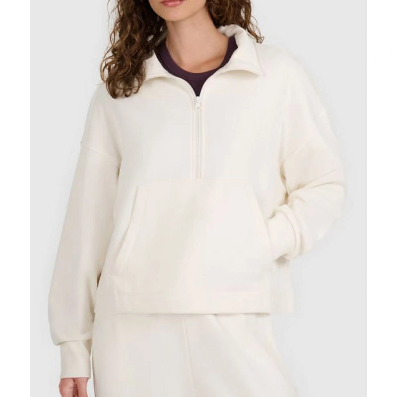 Gramatura 330 gsm - solidna grubość materiału zapewniająca trwałość i komfort noszenia· Wnętrze bez podszycia - lżejsza konstrukcja zapewniająca komfort użytkowania· Krój oversize - luźno układa się na sylwetce i zapewnia swobodę ruchu· Długość do bioder - klasyczna, uniwersalna długość· Wykonana w przeważającej części z bawełny - miękka, trwała i przyjemna w dotyku· Dodatek poliestru - zwiększa wytrzymałość materiału i odporność na zużycie· Jednolita kolorystyka - łatwa do zestawienia z innymi elementami garderoby· Dzianina dresowa french terry - gładka na zewnątrz, z pętelkowym splotem wewnątrz dla lepszej wentylacji· Dekolt ze stójką i zamkiem - dodatkowa ochrona szyi i możliwość regulacji rozpięcia· Mankiety ze ściągaczem - utrzymują rękawy na właściwym miejscu· Kieszeń kangurka z przodu - wygodne miejsce na dłonie i drobiazgi· Wkładana przez głowę - proste i szybkie zakładanie· Obniżona linia ramion – podkreśla swobodny charakte