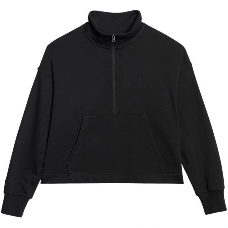 Gramatura 330 gsm - solidna grubość materiału zapewniająca trwałość i komfort noszenia· Wnętrze bez podszycia - lżejsza konstrukcja zapewniająca komfort użytkowania· Krój oversize - luźno układa się na sylwetce i zapewnia swobodę ruchu· Długość do bioder - klasyczna, uniwersalna długość· Wykonana w przeważającej części z bawełny - miękka, trwała i przyjemna w dotyku· Dodatek poliestru - zwiększa wytrzymałość materiału i odporność na zużycie· Jednolita kolorystyka - łatwa do zestawienia z innymi elementami garderoby· Dzianina dresowa french terry - gładka na zewnątrz, z pętelkowym splotem wewnątrz dla lepszej wentylacji· Dekolt ze stójką i zamkiem - dodatkowa ochrona szyi i możliwość regulacji rozpięcia· Mankiety ze ściągaczem - utrzymują rękawy na właściwym miejscu· Kieszeń kangurka z przodu - wygodne miejsce na dłonie i drobiazgi· Wkładana przez głowę - proste i szybkie zakładanie· Obniżona linia ramion – podkreśla swobodny charakte