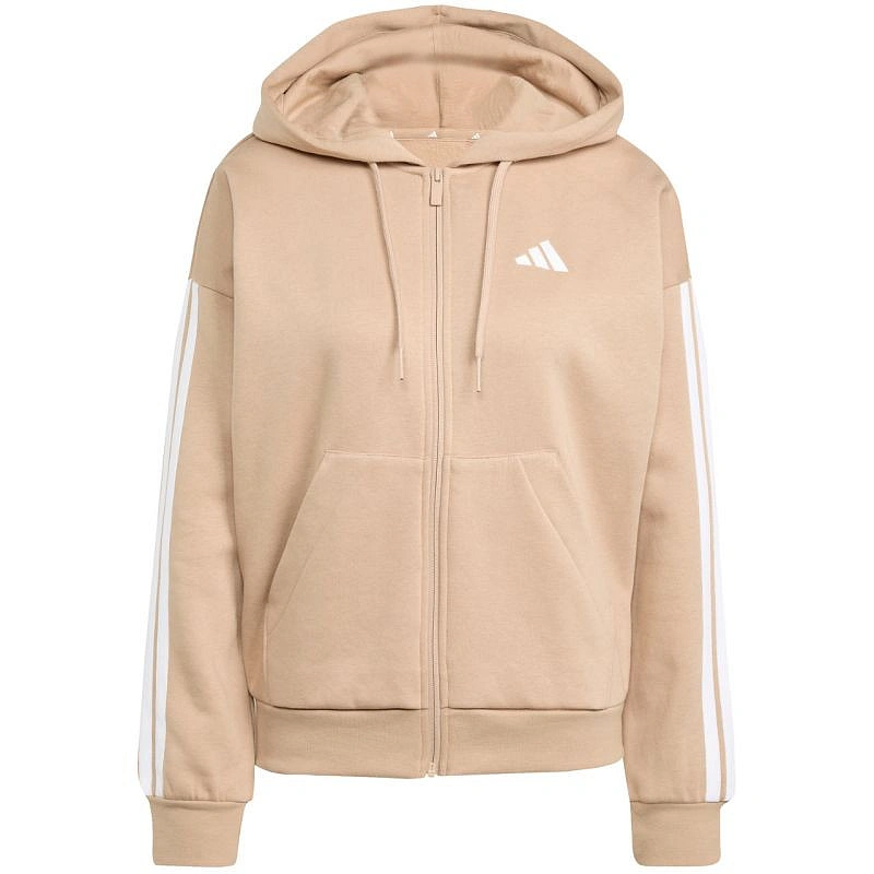 Dámska fleecová mikina adidas Essentials 3-Stripes so zipsom béžová JX7706