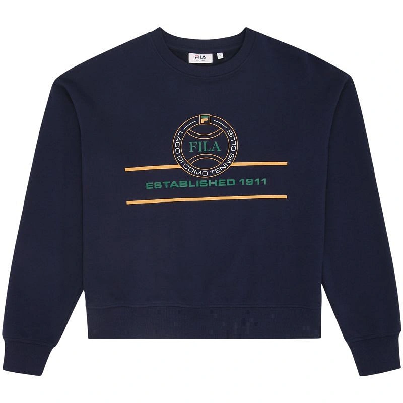 Dámska mikina Fila Parella v tmavomodrej farbe FAW1204 50004 Táto dámska mikina je ideálna na každodenné nosenie, má logo s grafikou inšpirovanou tenisom, štandardný strih, rebrované manžety a spodný okraj, prevažne bavlnenú tkaninu s prídavkom polyesterových vlákien. Hlavná tkanina: 80 % bavlna, 20 % polyester.