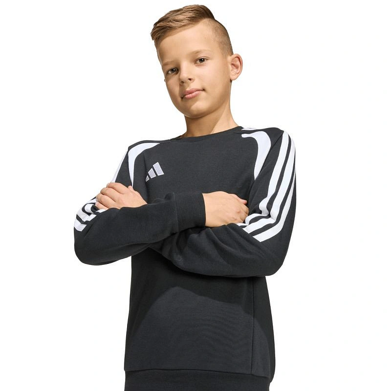 Detská mikina adidas Tiro 26 League Sweat Crew Black KF5822 Detská mikina adidas Tiro 26 League Sweat Crew je ideálna na každodenné nosenie bez ohľadu na ročné obdobie, má regular fit konštrukciu, zmes bavlny a recyklovaného polyesteru, mäkkú izoláciu vo vnútri a rebrované manžety a spodný okraj, aby mikina držala na svojom mieste.Materiál: 70% bavlna, 30% recyklovaný polyester.