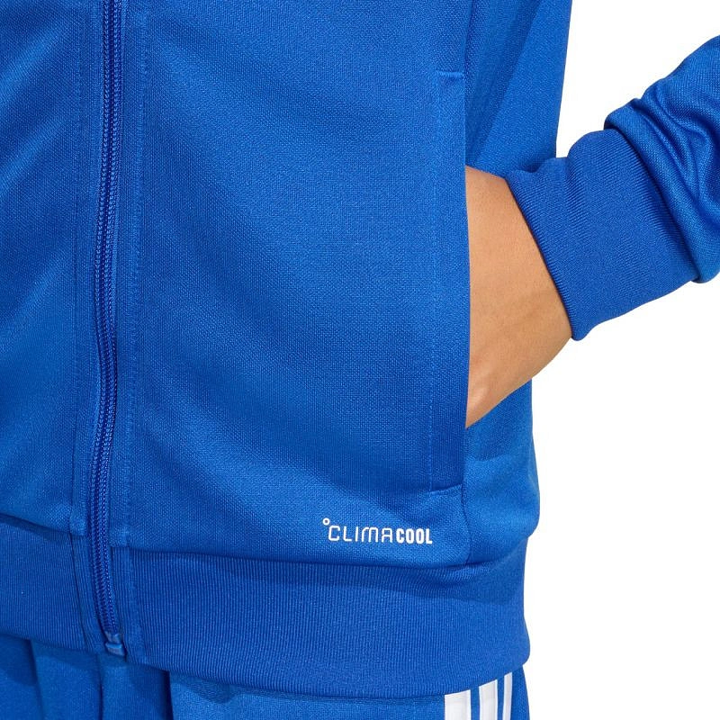 Detská tréningová mikina adidas Tiro 26 League modrá JY7199 Táto detská futbalová mikina adidas je ideálna na tréning. stojací golier. zips po celej dĺžke. priliehavý strih. technológia climacool odvádza a rozptyľuje pot. pruhy na rukávoch. decentné logo. rýchloschnúce vlákna. materiál: 100% recyklovaný polyester.