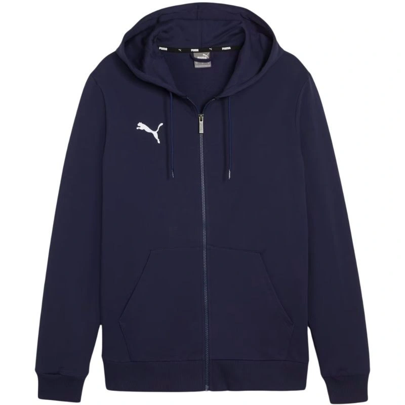 Puma TeamGoal Casuals navy blue 658596 06. Detská mikina Puma na každodenné nosenie. regular fit. mäkký materiál. priestranná nenastaviteľná kapucňa. regular fit s rebrovanými manžetami. malé logo. futbalová kolekcia Team Goal. zips po celej dĺžke. otvorené bočné vrecká. hlavný materiál: 100% bavlna.