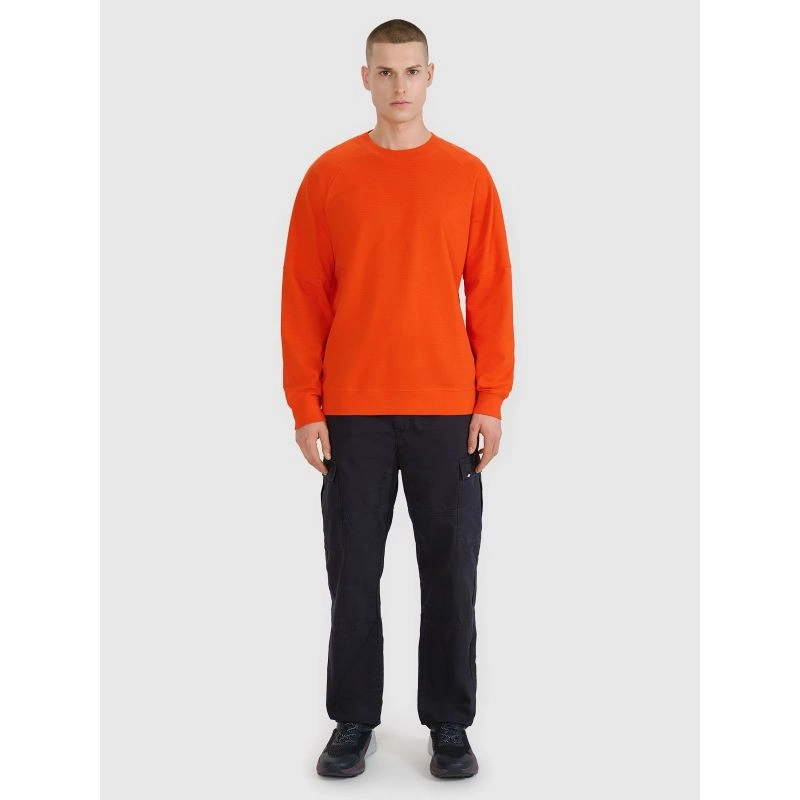 Mikina je vyrobená zo 100 % bavlny, je mäkká na dotyk a odolná, aby vydržala mnoho sezón. Štruktúrovaný úplet s výraznou väzbou jej dodáva charakter, zatiaľ čo okrúhly výstrih s miernym rebrovaním jej dodáva klasický vzhľad.