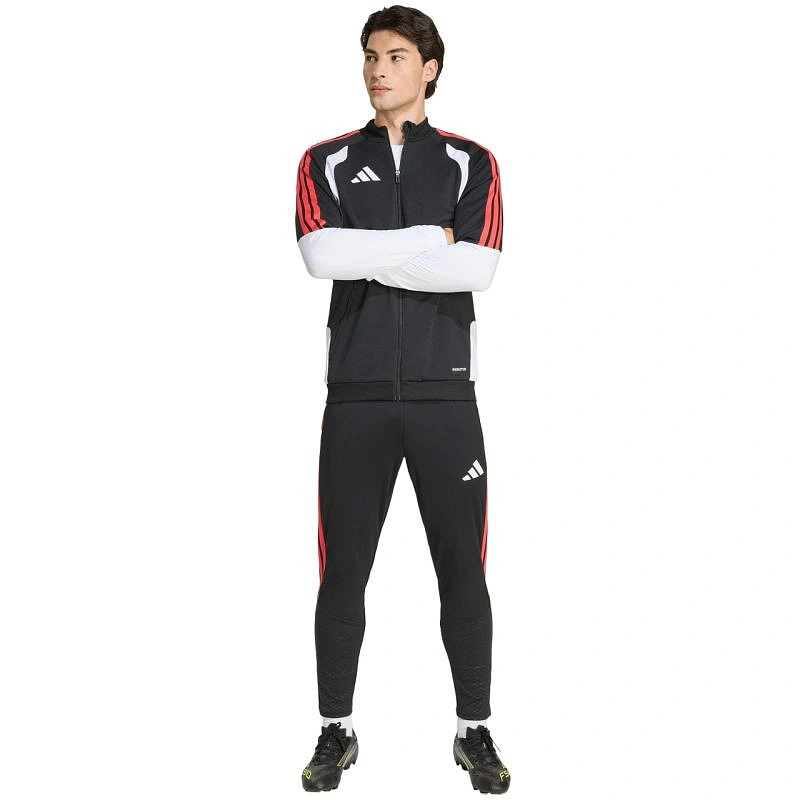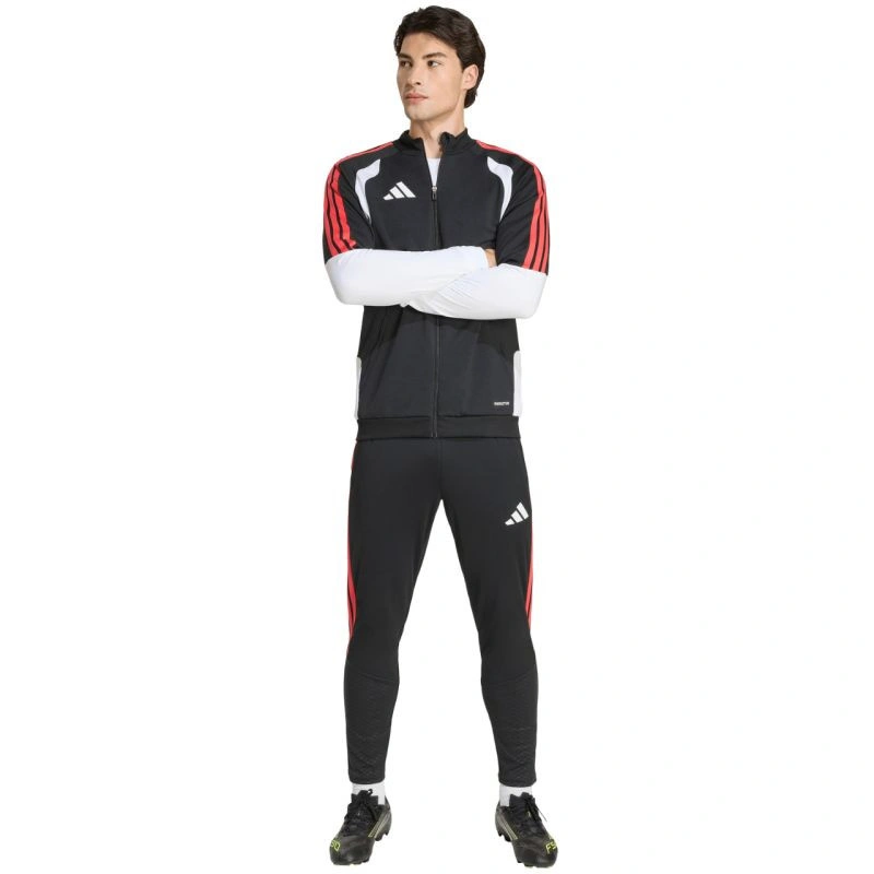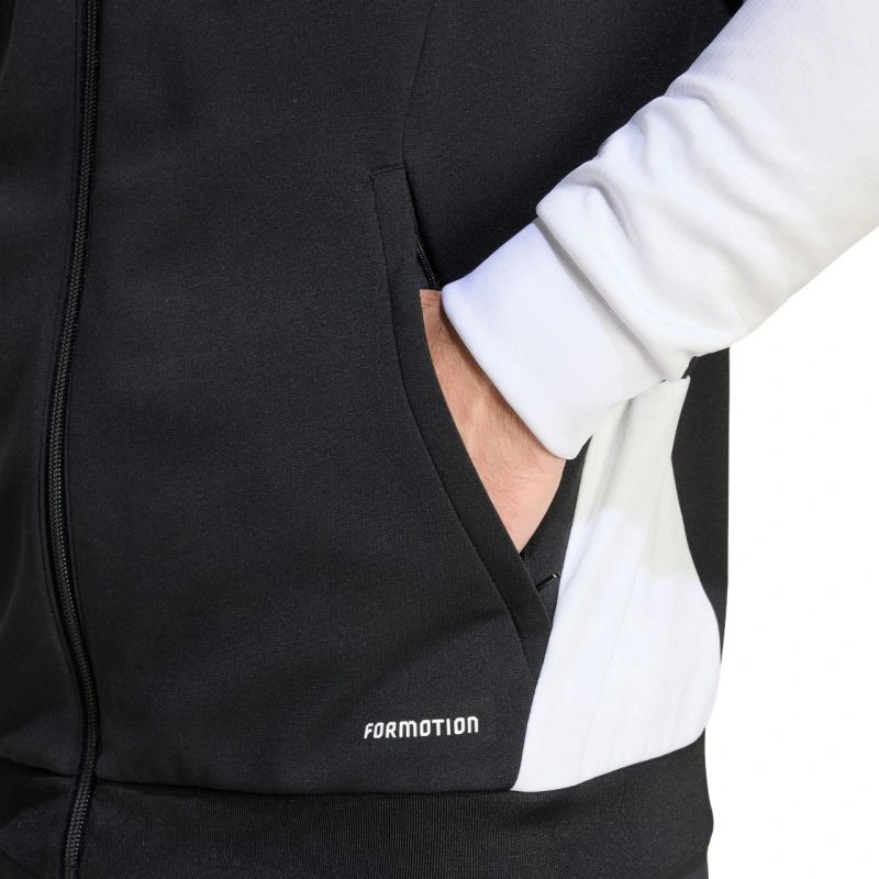 Pánska futbalová mikina adidas Tiro 26 Competition Training black KA7680 Táto pánska futbalová mikina adidas je ideálna na tréning. Stojací golier. Dlhý zips s ochrannou légou. Priliehavý strih. Technológia Formotion pre väčšiu pohyblivosť. Sieťované vsadky na hrudi. Pruhy na ramenách. Jemné logo na hrudi. Kontrastné vsadky na rukávoch a bokoch. Rýchloschnúce vlákna. 100% recyklovaný polyester.