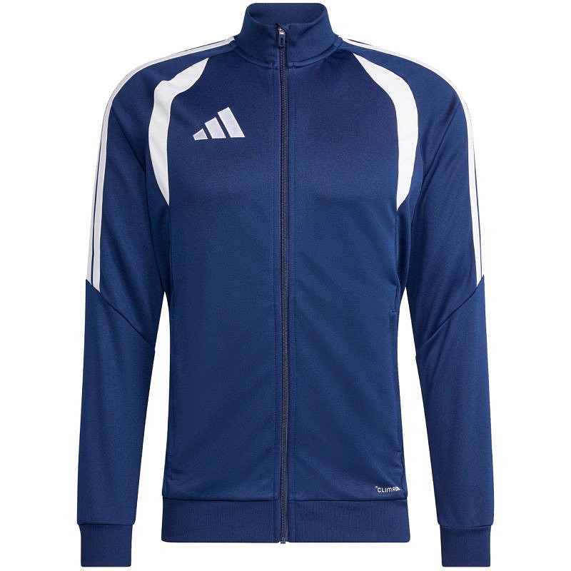 Pánska futbalová mikina adidas Tiro 26 League Training v tmavomodrej farbe JY7205. táto pánska futbalová mikina adidas je ideálna na tréning. stojací golier. zips po celej dĺžke. strih na mieru. technológia Climacoool pre absorpciu vlhkosti a odvod vlhkosti. sieťované vložky na hrudi. bočné vrecká na zips. chránič brady. nášivka na brade. pruhy na rukávoch. decentné logo. recyklované vlákna. materiál: 100% recyklovaný polyester.