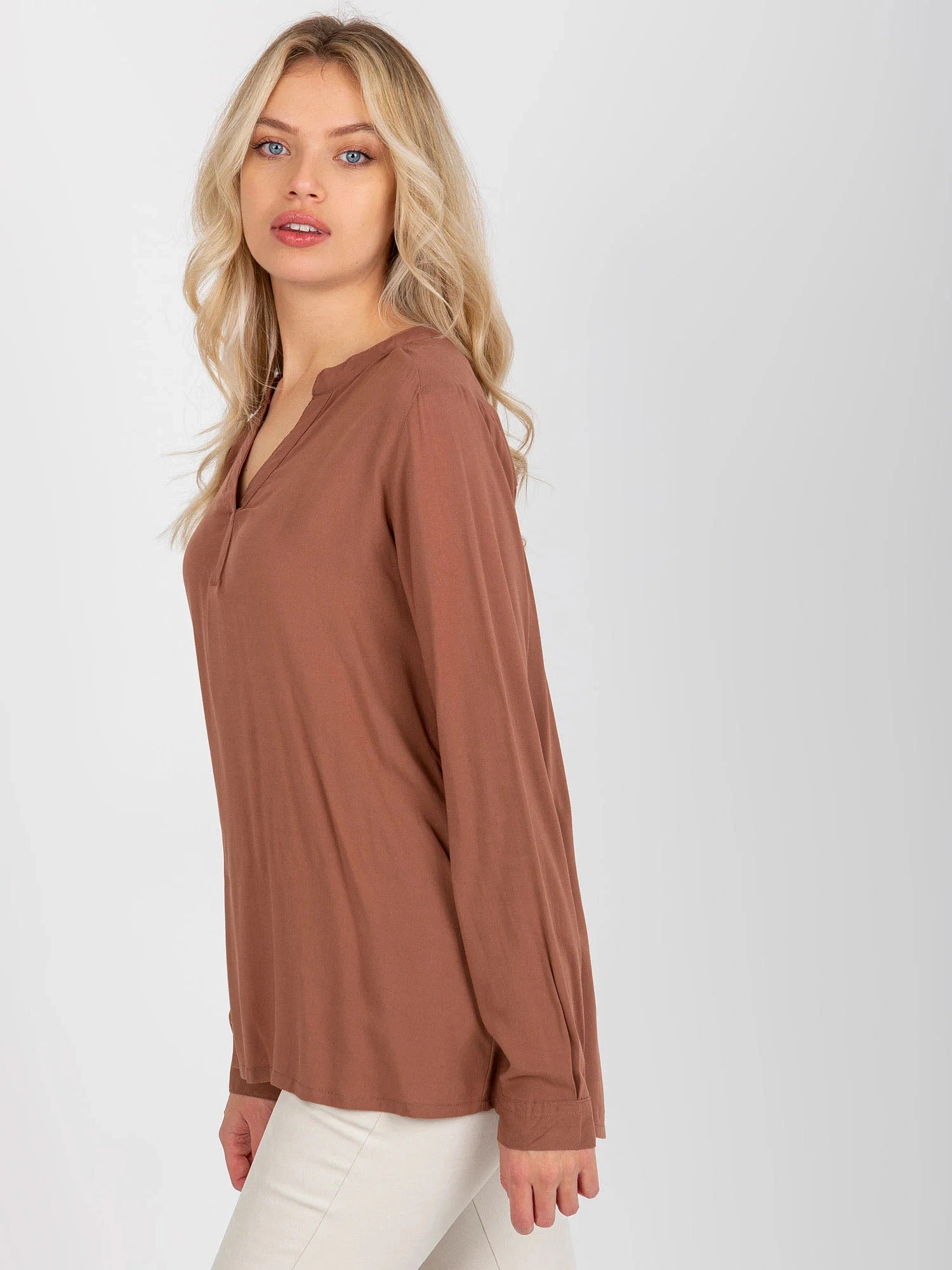 Hnedá dámska blúzka z viskózy vo voľnom strihu SUBLEVEL .