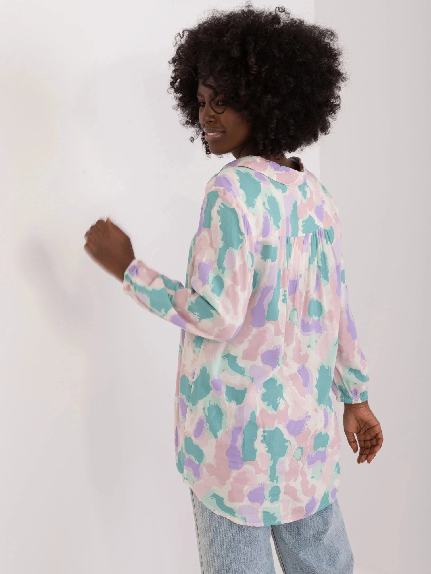 Rozmery blúzky vo veľkosti S merané na plocho: šírka v podpazuší - 50 cm, dĺžka rukáva - 48 cm, celková dĺžka (vpredu)- 61 cm, celková dĺžka (vzadu)- 70 cm.