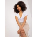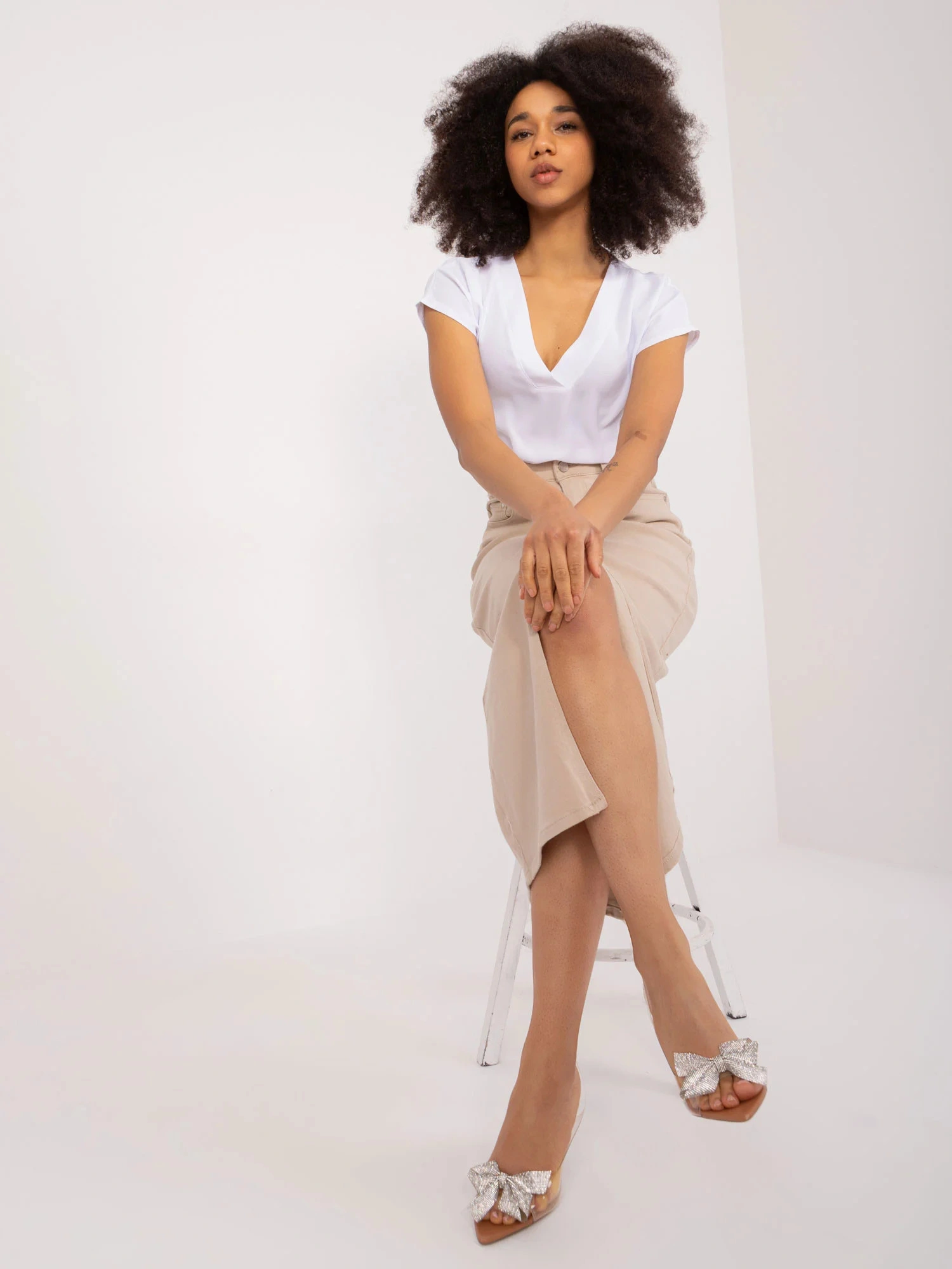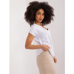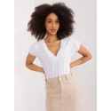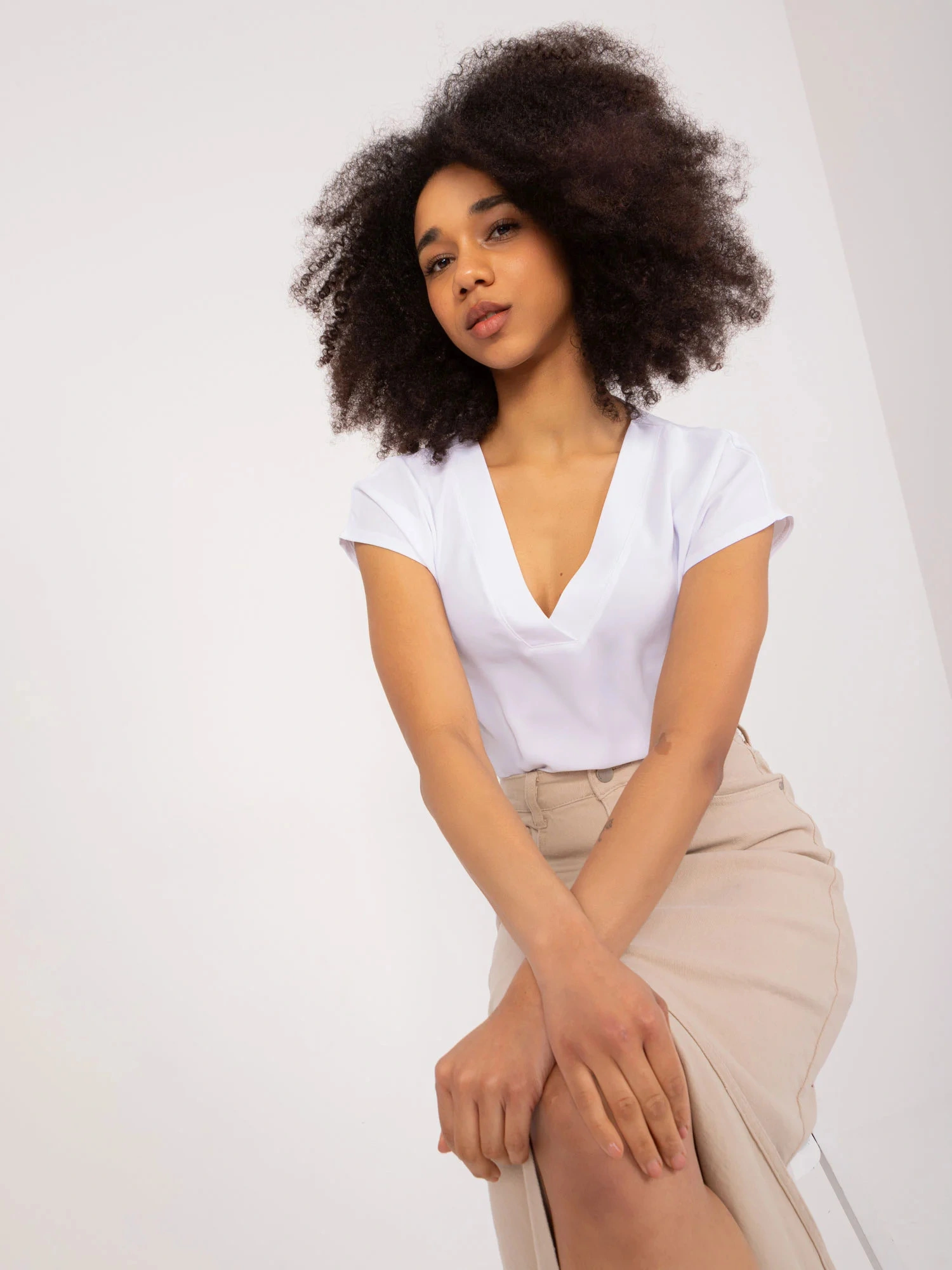 Dámska biela blúzka s prešívaným výstrihom do V. Krátke rukávy.