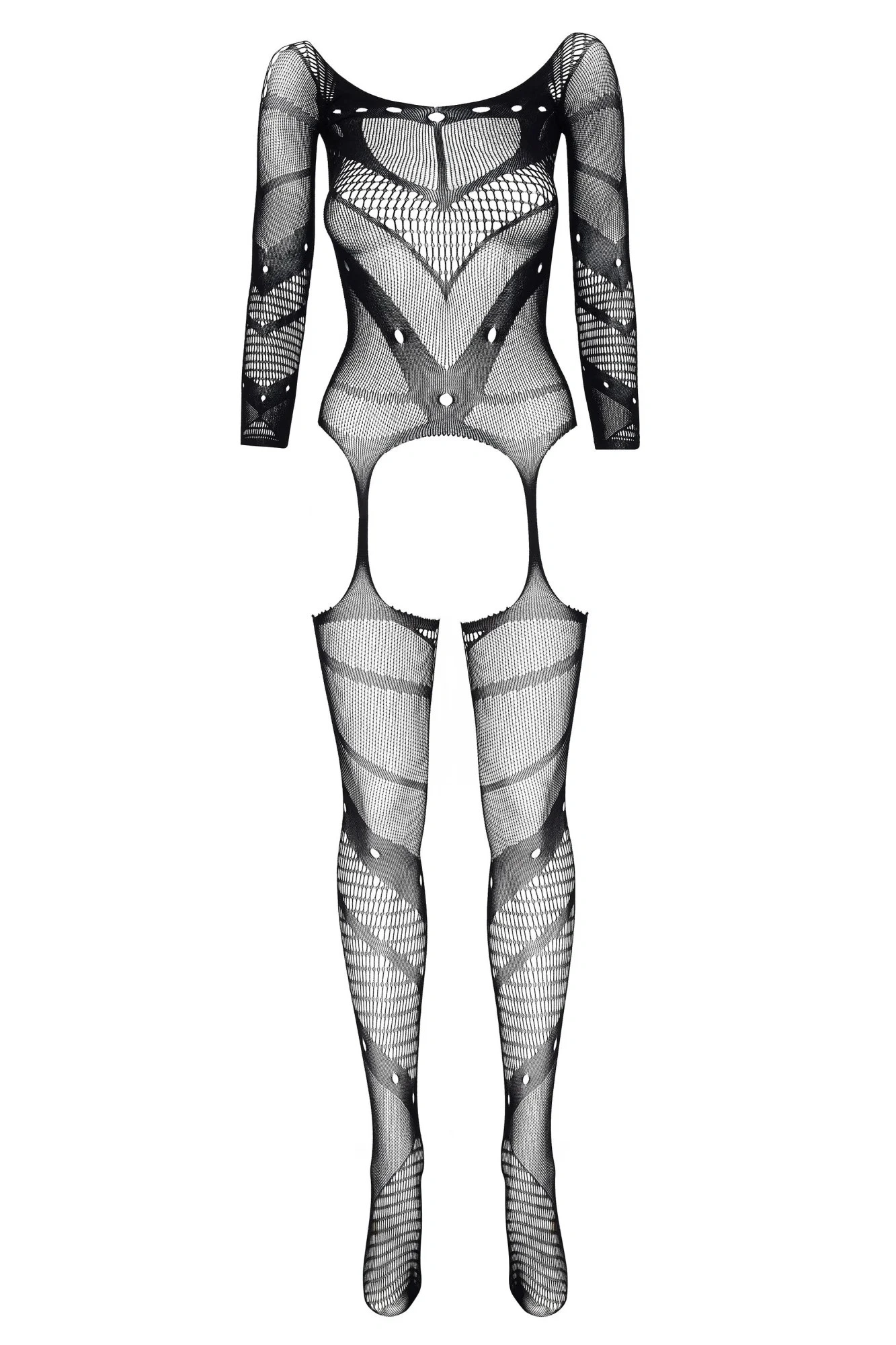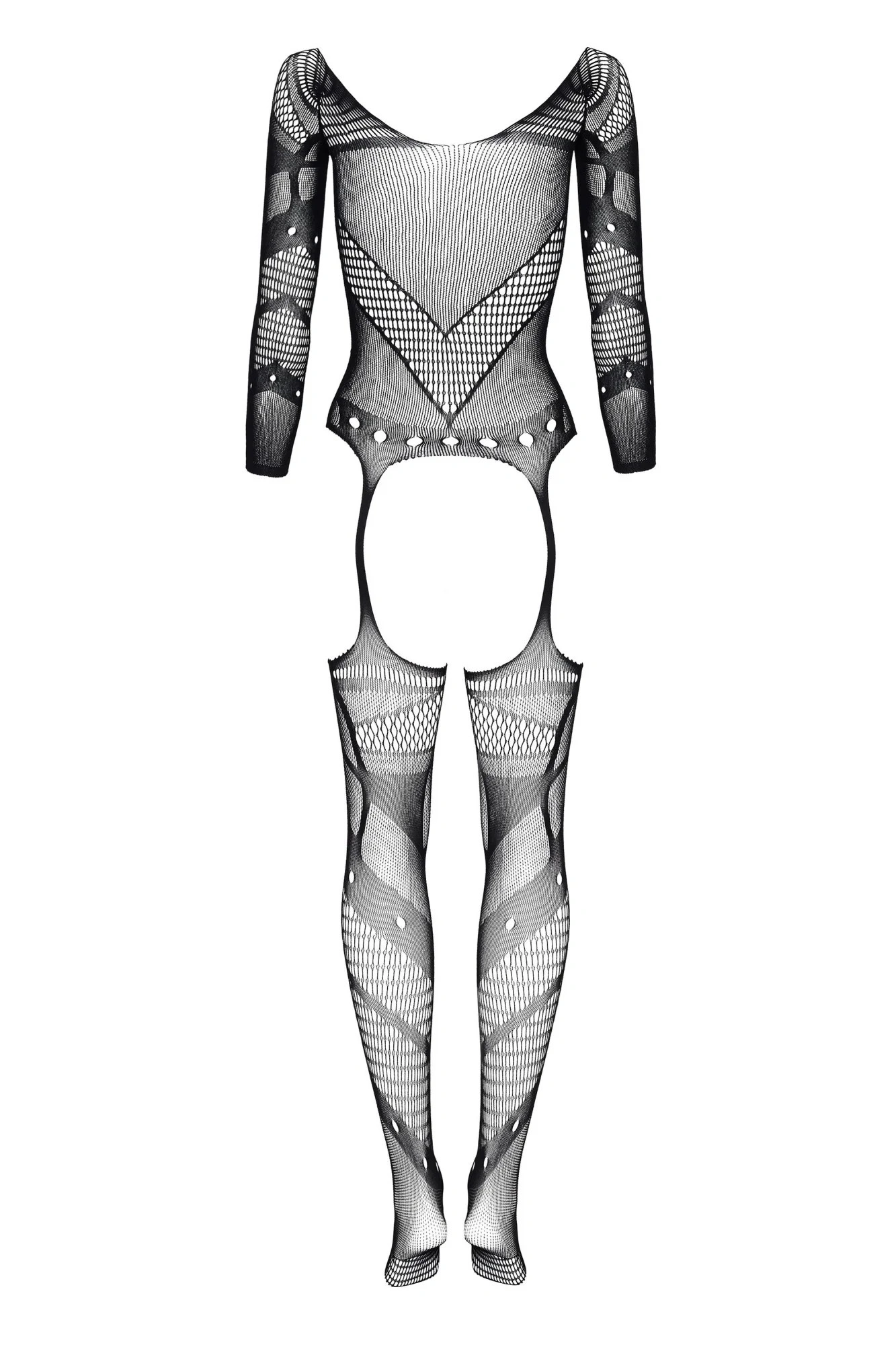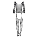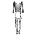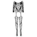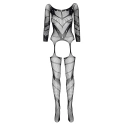 Bodystocking Esmeralda BEAUTY NIGHT FASHION - čierny - trojštvrťové rukávy - priehľadná sieťovina - otvorený rozkrok