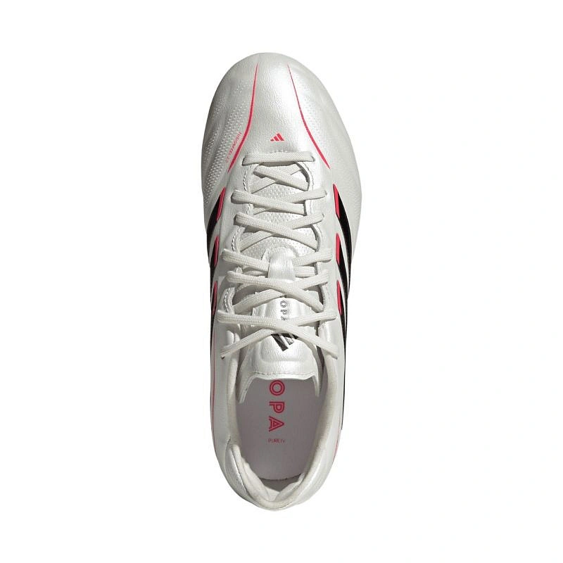 Detská profesionálna kopačka adidas Copa Pure IV Elite FG JR4406 je ideálna na prírodné povrchy s tvrdým povrchom. Konštrukcia je založená na technológii Fusionskin, menej priedušnej vrstve na zvršku. Konštrukcia jazyka Primeknit ponúka prispôsobenie a fixáciu na podporu pohodlia, zatiaľ čo polstrovaná stielka pomáha dosiahnuť anatomické prispôsobenie. Šnurovanie stabilizuje celkové prispôsobenie. Špeciálne umiestnenie kolíkov v podrážke zaisťuje správne rozloženie tlaku. Podrážka s prepracovanou konštrukciou kolíkov poskytuje spoľahlivú priľnavosť. Obuv z kolekcie Born For Goals Pack. Technické špecifikácie: - Štandardný strih - Šnurovanie - Syntetická stielka - Syntetická podrážka - Technológia Fusionskin.