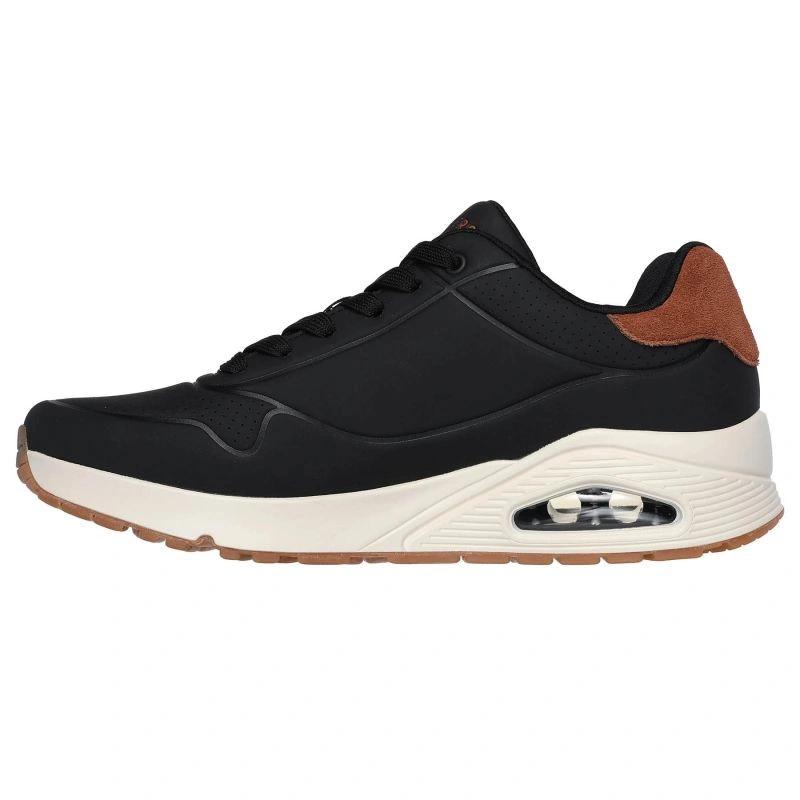 - Skechers Uno Suited On Air 183004-BBK Black je štýlová pánska obuv v čiernej farbe, ideálna na každodenné nosenie a špeciálne príležitosti.