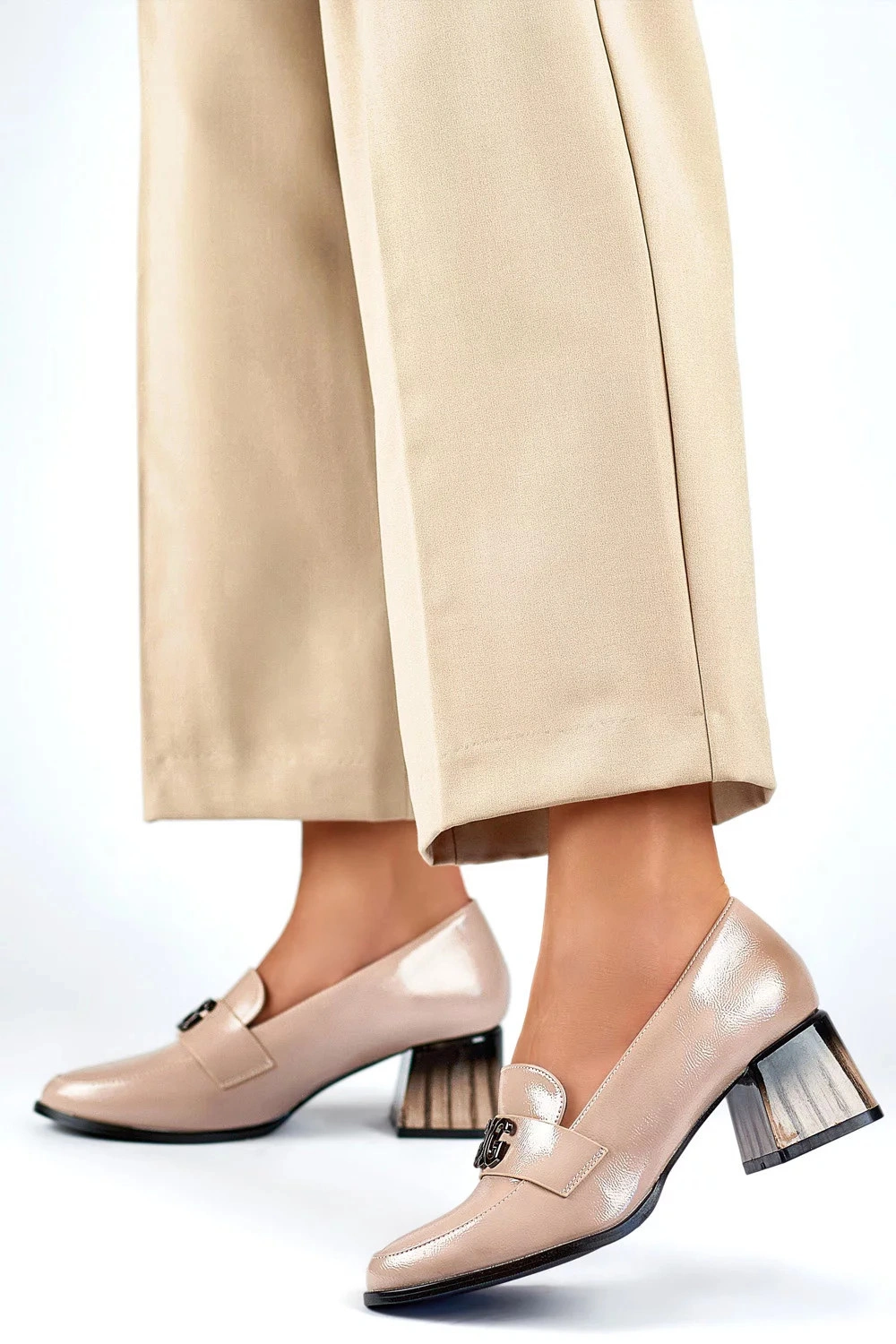 Štýlové lodičky z lakovanej kože, ktoré spájajú eleganciu s všestrannosťou. Pohodlná stielka z prírodnej kože zaručuje komfort počas celodenných aktivít. 5,5 cm vysoký ihličkový podpätok dodáva topánkam jemnú eleganciu a zároveň poskytuje stabilitu a pohodlie. Vďaka nazúvaciemu dizajnu sa ľahko obúvajú a vyzúvajú, zatiaľ čo okrúhla špička im dodáva klasický a nadčasový vzhľad. Vďaka svojej všestrannosti budú tieto lodičky ideálne počas celého roka a doplnia ležérny aj formálnejší štýl.