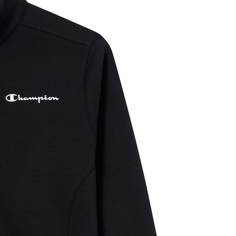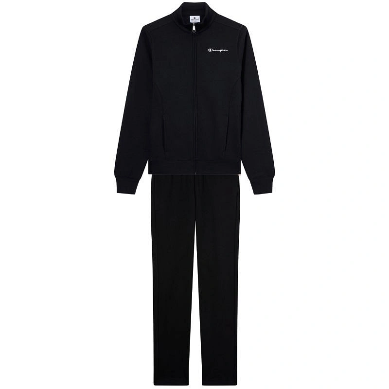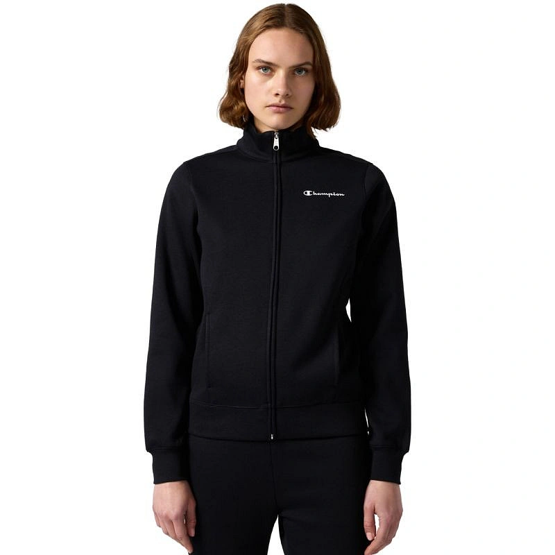 Dámska tepláková súprava Champion s celoprepínacím zipsom čierna 118289 KK001 Dámska tepláková súprava Champion je tepláková súprava na každodenné nosenie s mäkkým pocitom a vysokým obsahom bavlny, pridané polyesterové vlákna, štandardný strih, jednosmerný zips v hornej časti, rebrované manžety a lem, otvorené vrecká v hornej časti, nohavice s malými rozparky a nastaviteľnou elastickou šnúrkou v páse, nohavice bez vreciek, materiál: 55 % bavlna, 45 % polyester.