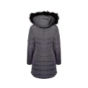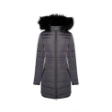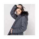 Dlhá prešívaná bunda, vyrobená z nepremokavej a priedušnej tkaniny ARED 5000. Mäkká na dotyk a s vysokým leskom s lichotivými strihovými líniami. Pohodlná nízkoobjemová výplň na udržanie tepla. Priliehavá kapucňa lemovaná odnímateľnou hodvábne jemnou umelou kožušinou. Bujný zamatový ozdobný golier je zdobený kryštálmi Swarovski pre dotyk luxusu.