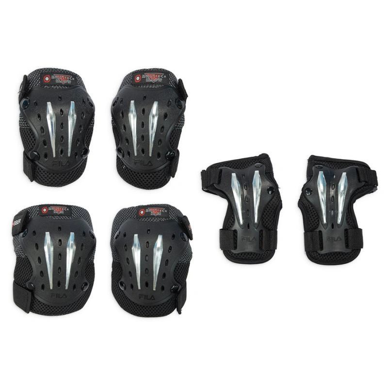 - Chrániče FILA obsahujú: chrániče kolien, chrániče lakťov a chrániče zápästia.