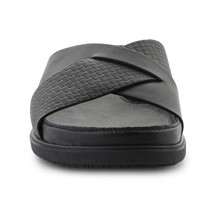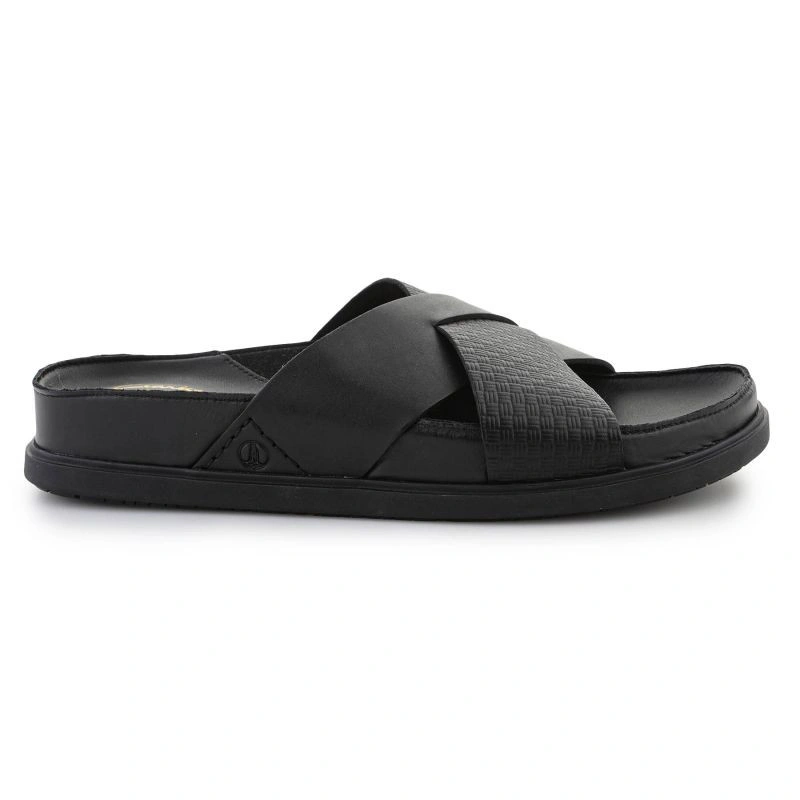 Ľahká a pružná gumová podrážka poskytuje dobrú priľnavosť a stabilitu, vďaka čomu sú sandále vhodné na každodenné nosenie aj na dovolenkové prechádzky. Klasická čierna farba a prekrížené remienky dodávajú modelu nadčasový, univerzálny charakter.