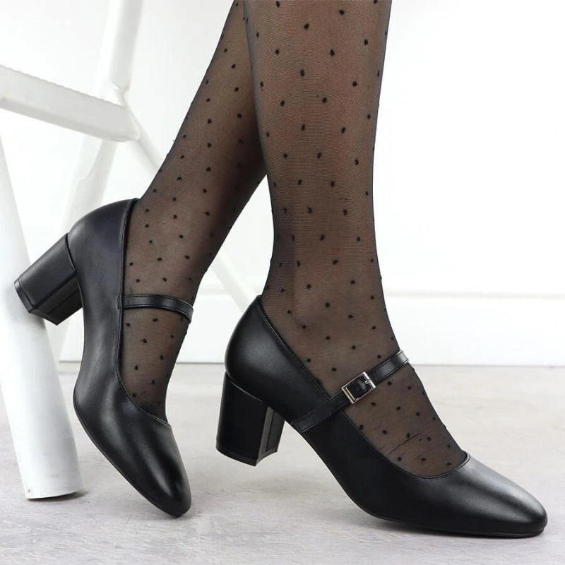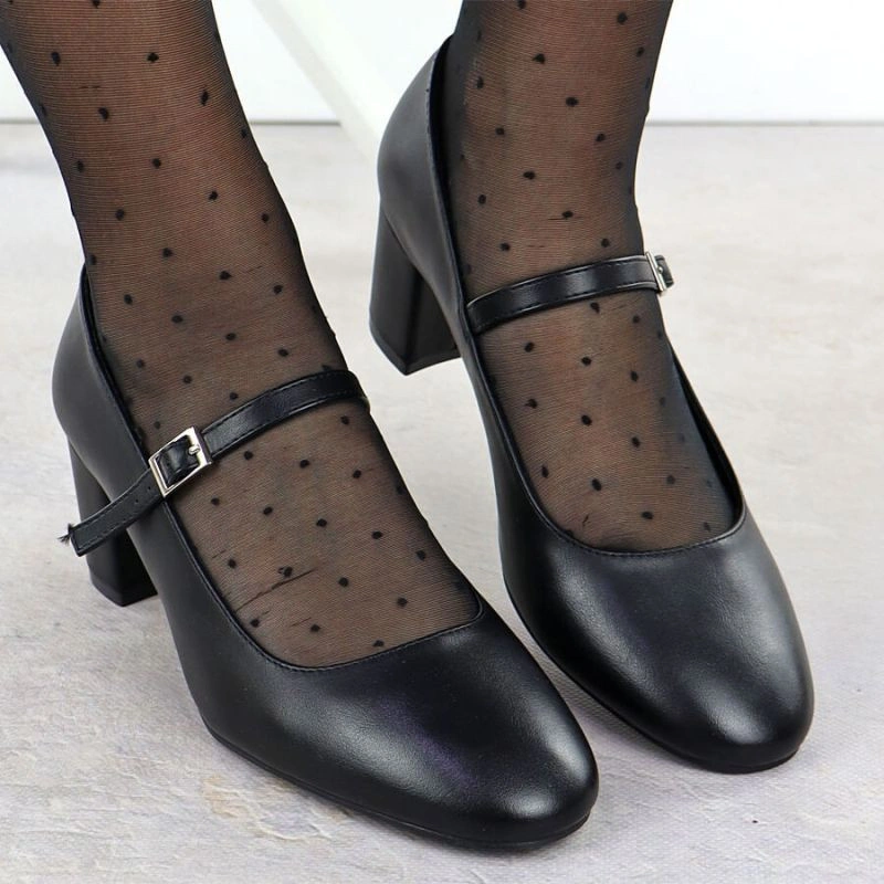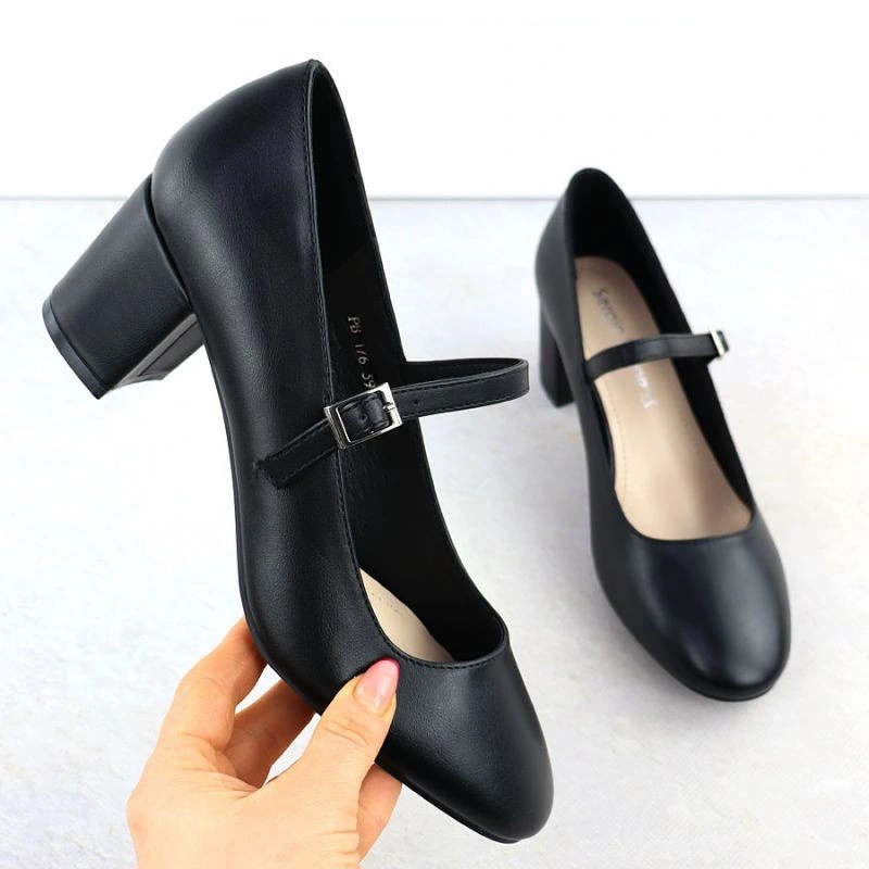 Popis Čierne lodičky Sergio Leone na nízkom podpätku s remienkom PB176
