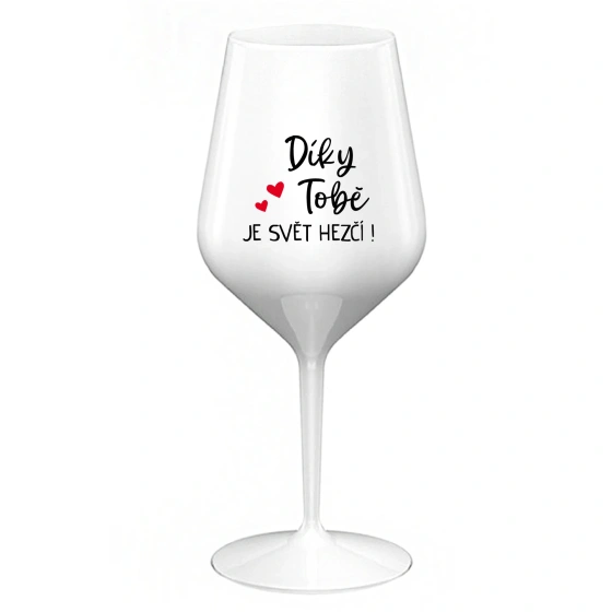 Nerozbitný pohár na biele víno s motívom TÝM, ŽE VÁM SVET LEPŠÍ! sa skvele hodí na záhradu, na pláž, na túru, na piknik a poslúži aj pri kempovaní. Keďže je vyrobený z kvalitného polykarbonátu, je de facto nerozbitný. Je to luxusný kúsok, s ktorým si môžete vychutnať víno takmer kdekoľvek. Má ergonomický tvar, ktorý príjemne padne do ruky, a keďže je ľahký, ľahko sa prenáša. Ľahko sa skladuje a ľahko sa čistí. Vďaka jeho dizajnu si s ním môžete vychutnať bezproblémové pitie vynikajúceho vína naozaj kdekoľvek.