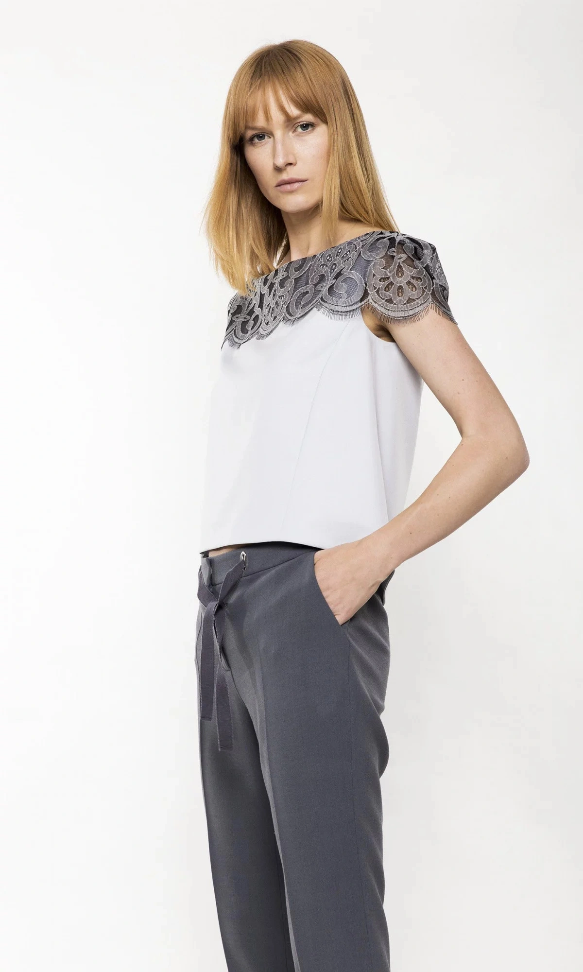 Šedý elegantný top s čipkou.99% jahňacia vlna 1% polyamid Pokyny pre starostlivosť: pokyny na pranie: iba v čistiarni Kolekcia: Jeseň/Zima Farba: Sivá Pohlavie: Ženské KategórieFC: Dámske oblečenie | Košeľa