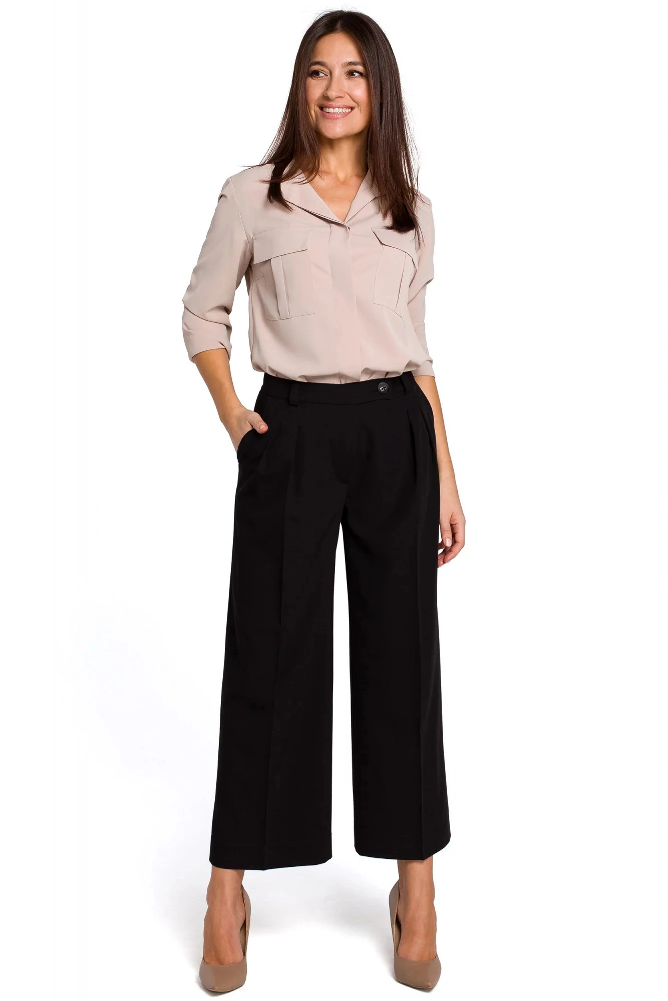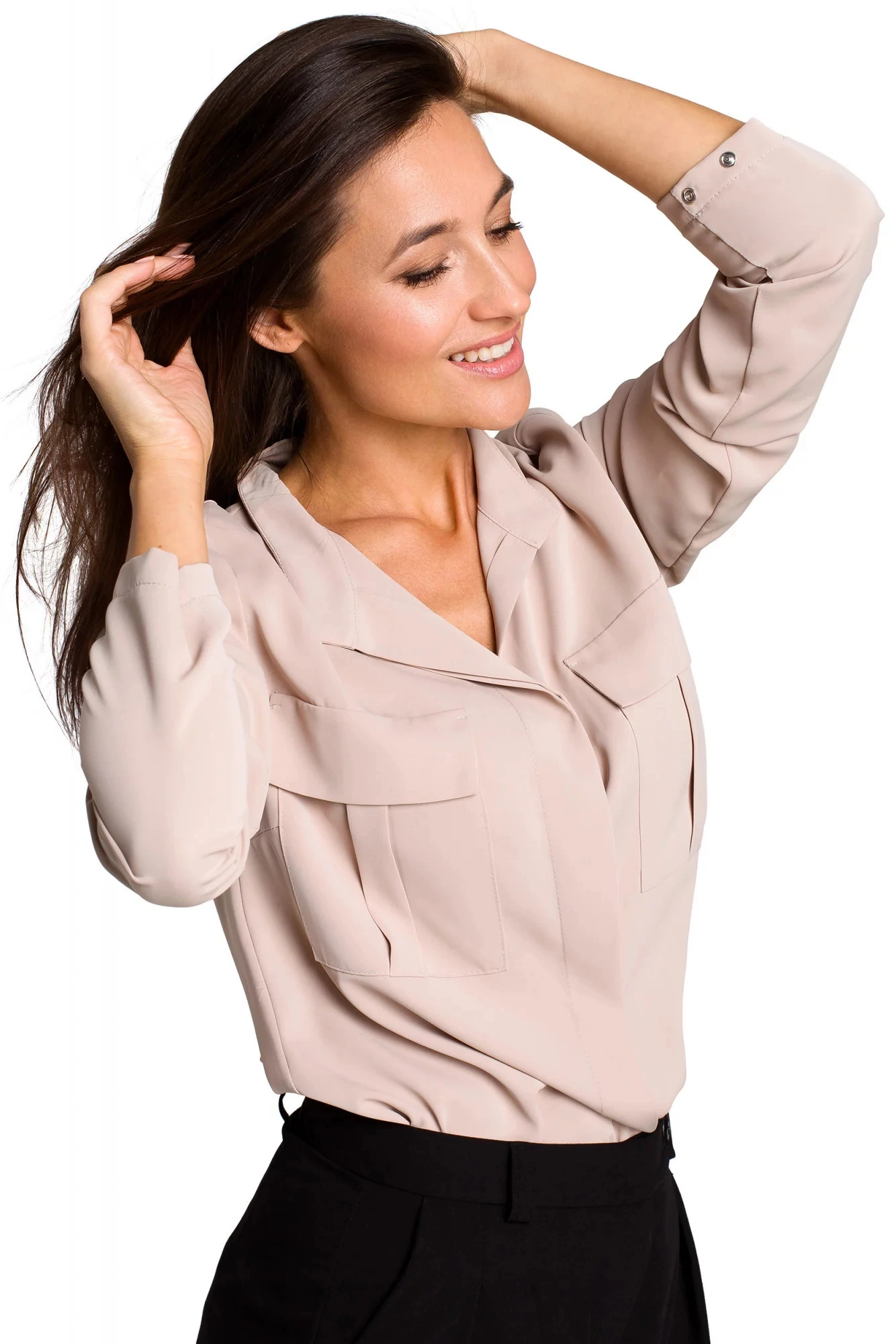 Táto blúzka s gombíkmi a dvojitými vreckami na hrudi má splývavú siluetu a lesklý lesk, ktorý zvyšuje eleganciu.Materiálové zloženie: 95% polyester 5% elastan Pokyny pre starostlivosť: pokyny na pranie: 30° pranie v práčke