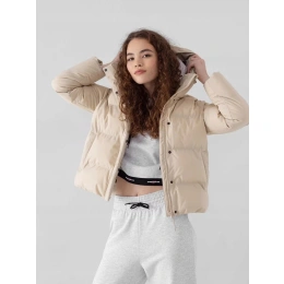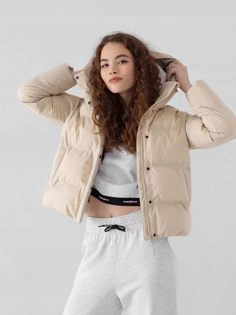 Dámska prešívaná páperová bunda. Spodná časť so šnúrkou.