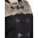 Dámsky zimný kabát s kapucňou. Ekologická kvalitná dekoratívna kožušina na úrovni hrudníka. Kabát sa zapína na cvočky. Má dve vonkajšie vrecká. Vďaka mimoriadne mäkkej a odolnej tkanine sa v ňom budú všetky dámy cítiť skvele, takže naozaj stojí za to ho mať. Dodáva sa v čiernej farbe.