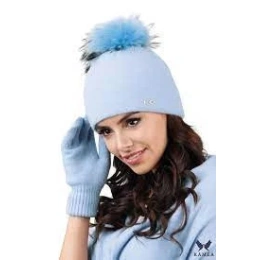 Dámska čepice¨s kožušinovou brmbolcom Mediolan-PN modrá - Kamea UNI světle modrá