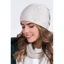 Čiapka je vyrobená z teplej priadze s prídavkom vlny a je ideálne vypasovaná. Predný diel modelu zdobí jemná aplikácie. Model je dvojvrstvový a vzadu má tri záložky. Čiapka je skvelou voľbou pre chladné dni.