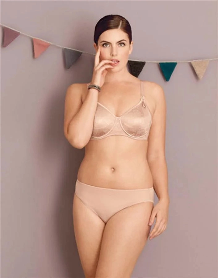 Elegantná béžová dámska podprsenka s vytvarovanými košíčkami s gélovými vypchávkami, ktoré krásne na