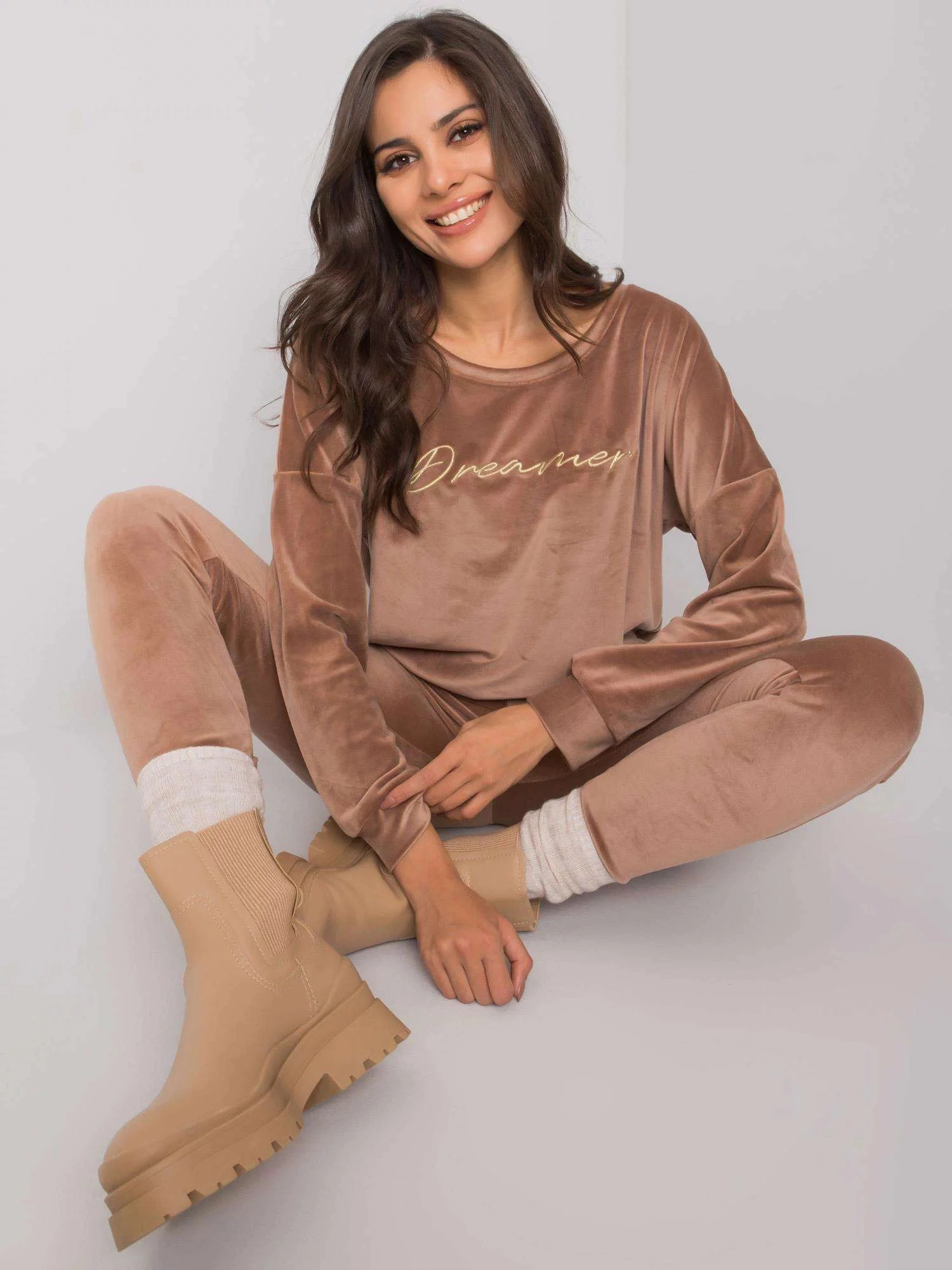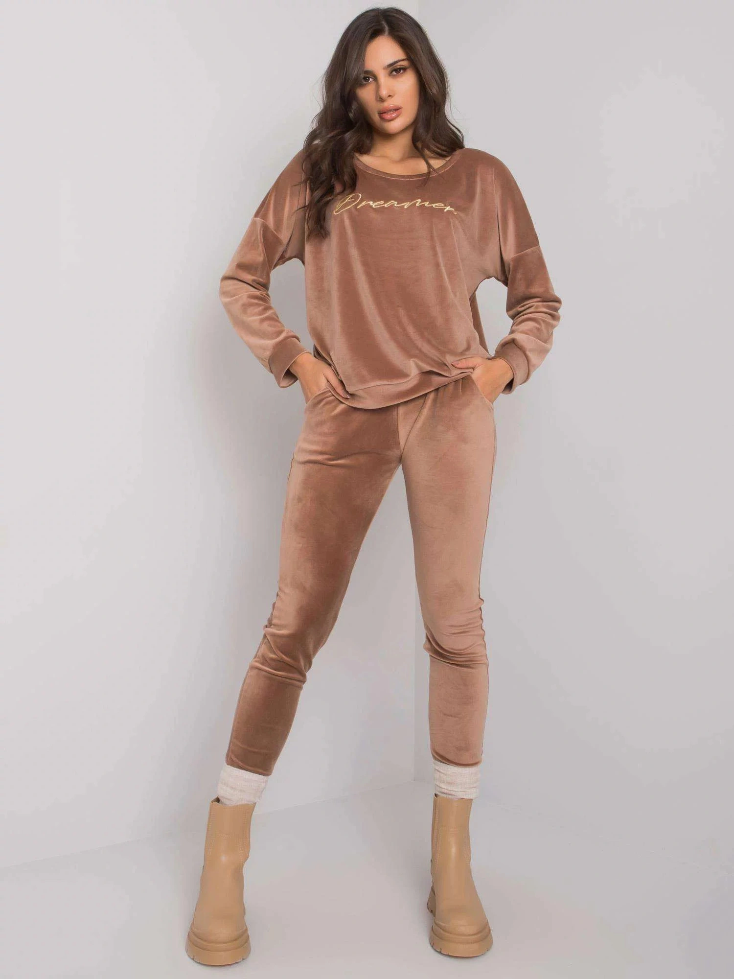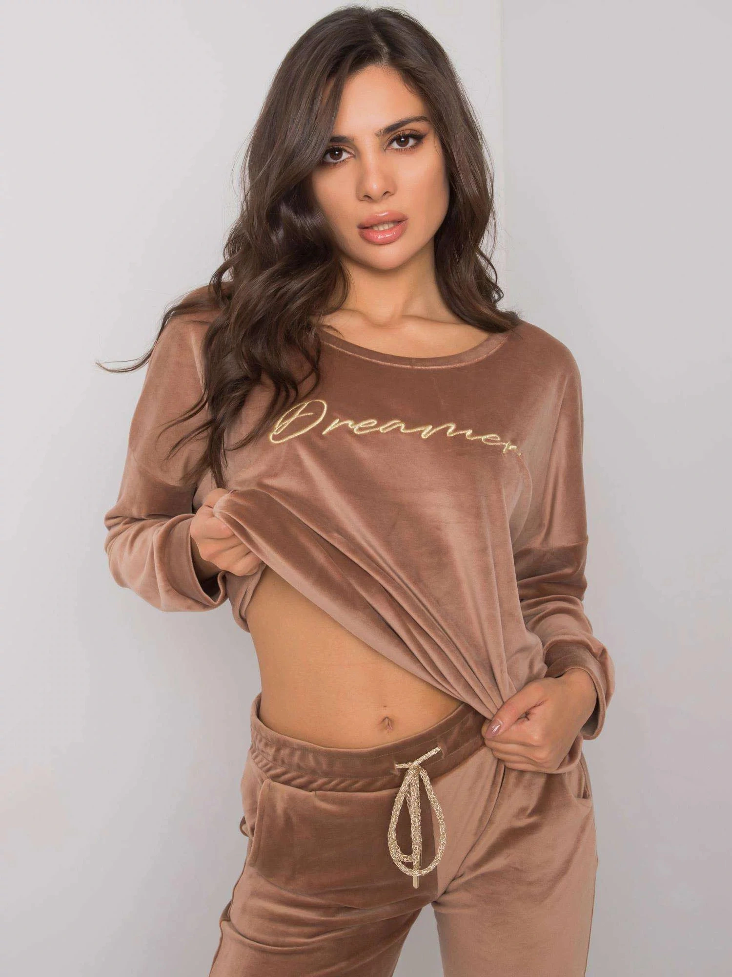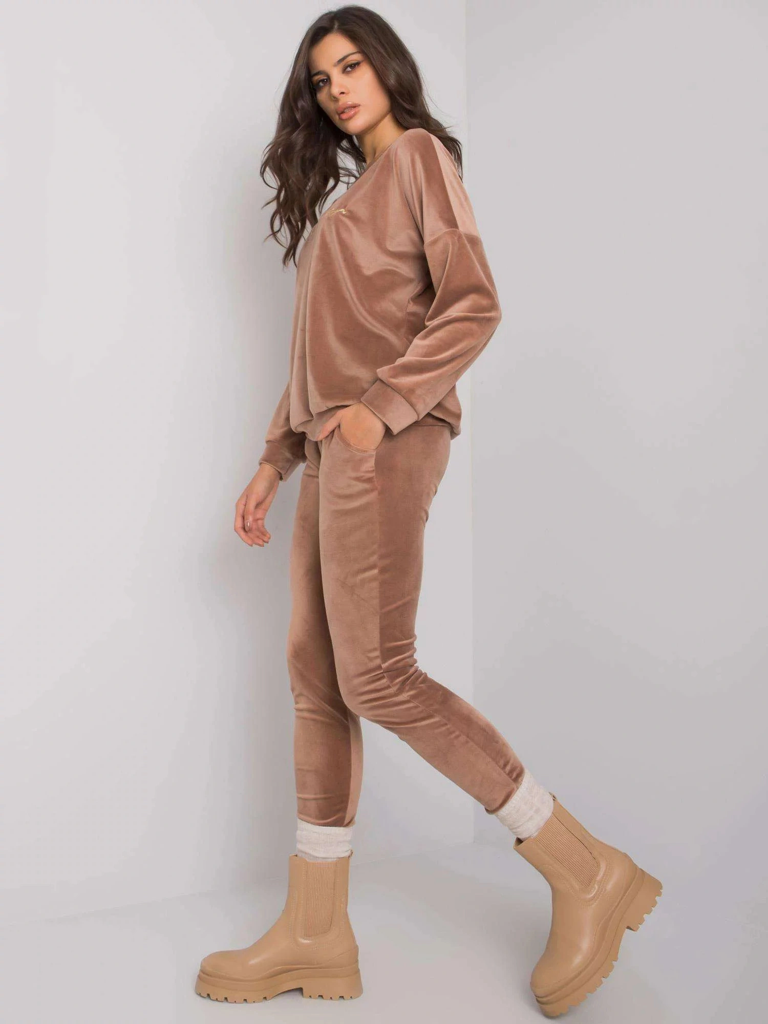 RUE PARIS Hnedá dvojdielna velúrová súprava .