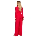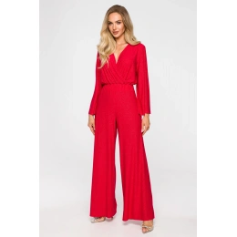 Tento krásný overal má řadu výhod. Je elegantní díky širokému střihu nohavic a rukávů, zavinovacímu vršku a jemnému řasení , je praktický a také pohodlný.