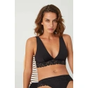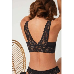 Dámska podprsenka s vložkami, bez kostice, spodná a zadná časť z hrubej luxusnej čipky.