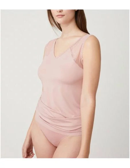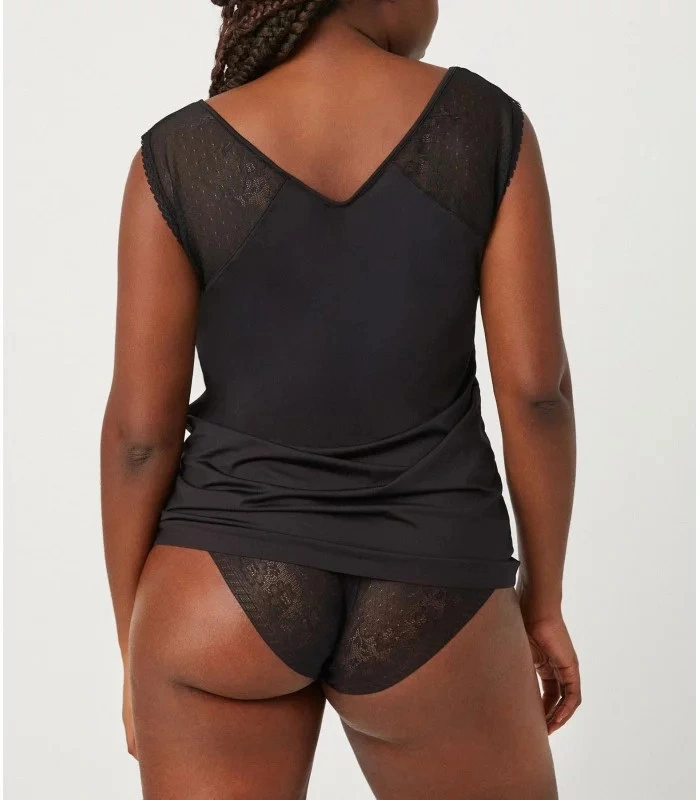 Dámska luxusná krátka košieľka na hrubé ramienka, s čipkou pri krku.