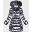 Prešívaná metalická bunda s kapucňou, ktorú možno odopnúť