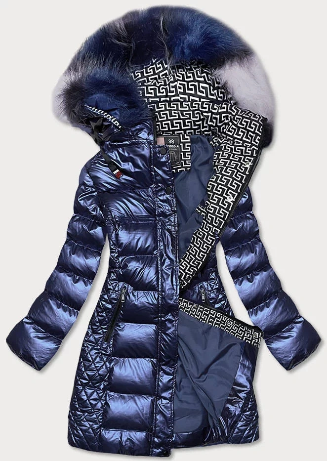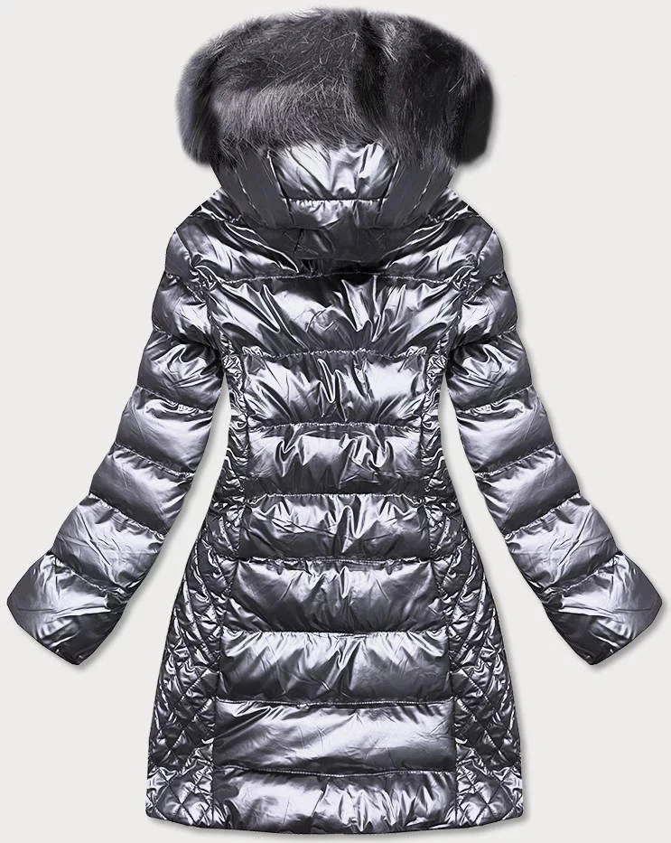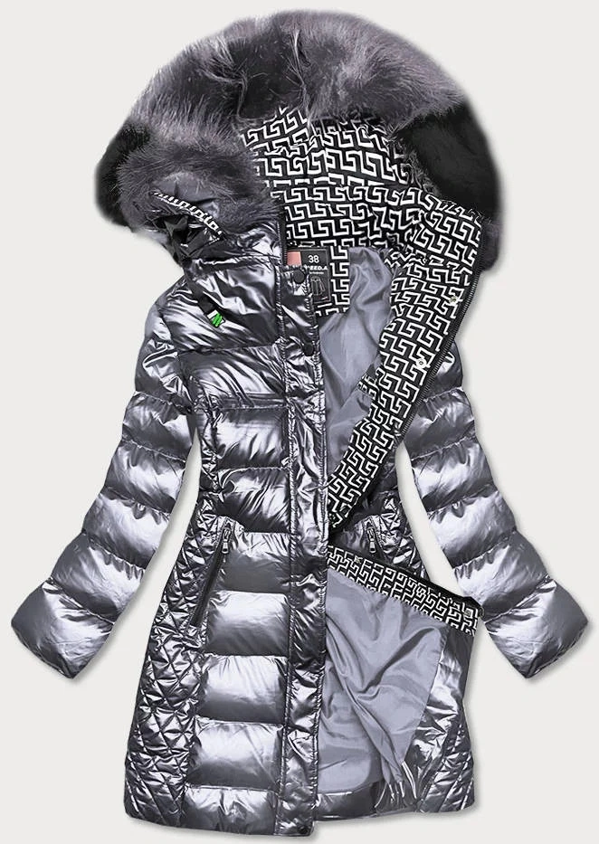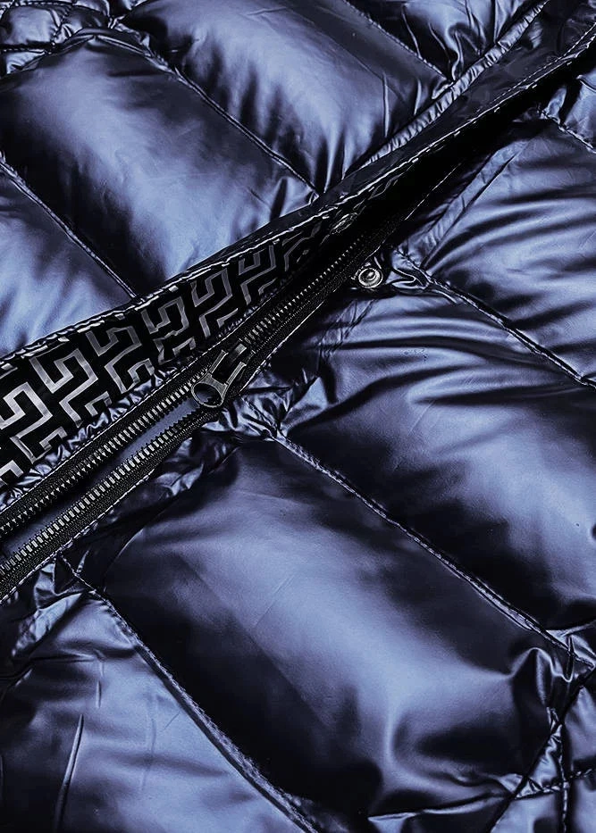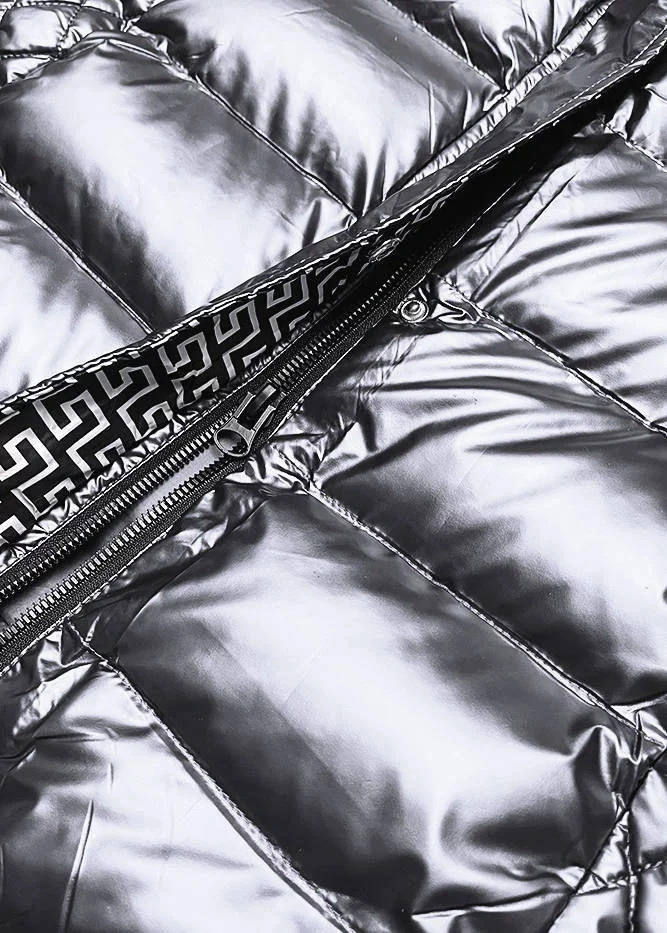 Prešívaná metalická bunda s kapucňou, ktorú možno odopnúť