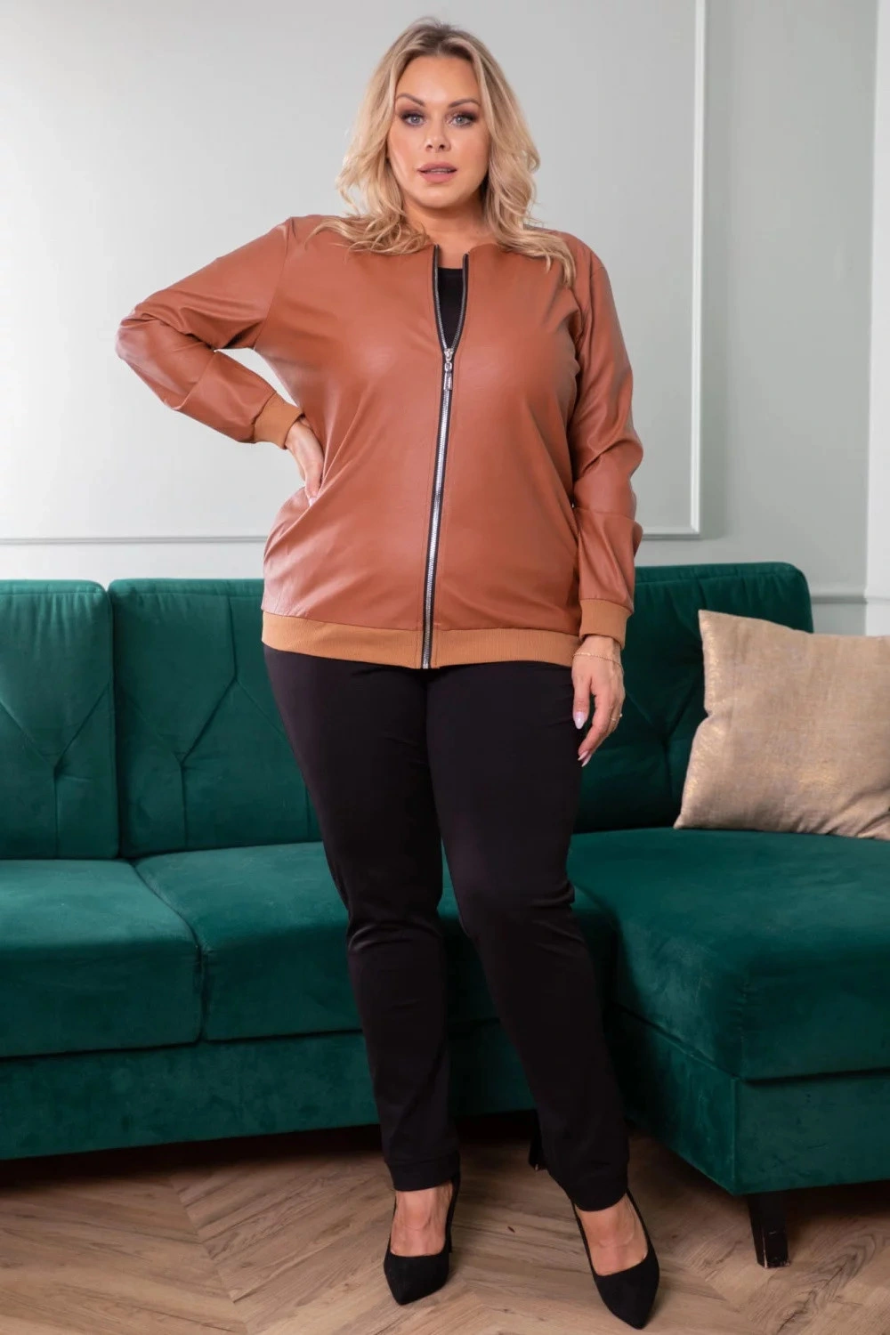 Bunda bomber Sylwka je mimoriadne módnou voľbou. Skvele sa hodí ako mikina aj ako vrchný odev pre mierne chladnejšie dni. Zapínanie na zips, so stojačikom. Zakončené rebrovaným lemom a manžetami. Je ušitá z vysoko kvalitného materiálu, takže je odolná. Má tiež dve veľmi pohodlné vrecká, ktoré jej dodávajú trochu športovejší vzhľad. Skvele doplní vaše každodenné oblečenie a je možné ju kombinovať s nohavicami aj sukňami. Môžete ju nosiť von s priateľmi, na výlet, na univerzitu alebo na nákupy. Je vyrobená v Poľsku v našich šijacích závodoch z najkvalitnejších domácich látok a je absolútnym MUST HAVE tejto sezóny! Ďalšou výhodou tohto modelu je, že sa skvele hodí ako pre veľmi ženské, tak aj pre drobné postavy. Na každom z nich bude vyzerať rovnako pôsobivo. Štýlovanie našej mikiny Sylwka je veľmi jednoduché. Môžete ju kombinovať napríklad s jednou z našich ceruzkových sukní. Rozbije športový charakter vzhľadu. Zvlášť keď vzhľad doplníte nákupnou taškou. Chystáte sa na výlet mimo mesta alebo na dlhú prechádzku? Skombinujte ju s pohodlnými nohavicami typu jogger a módnymi teniskami alebo teniskami.
