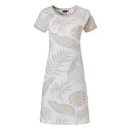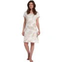 Dámska nočná košeľa bez rukávov od značky Pastunette s potlačou svetlohnedých listov na bielom pozadí.nočná košeľa má okrúhly výstrih a dĺžku 95 cm.