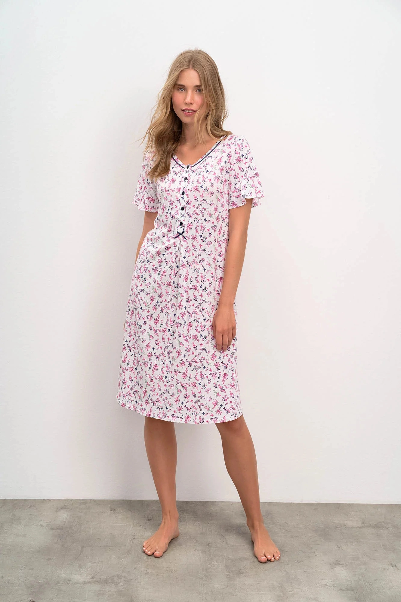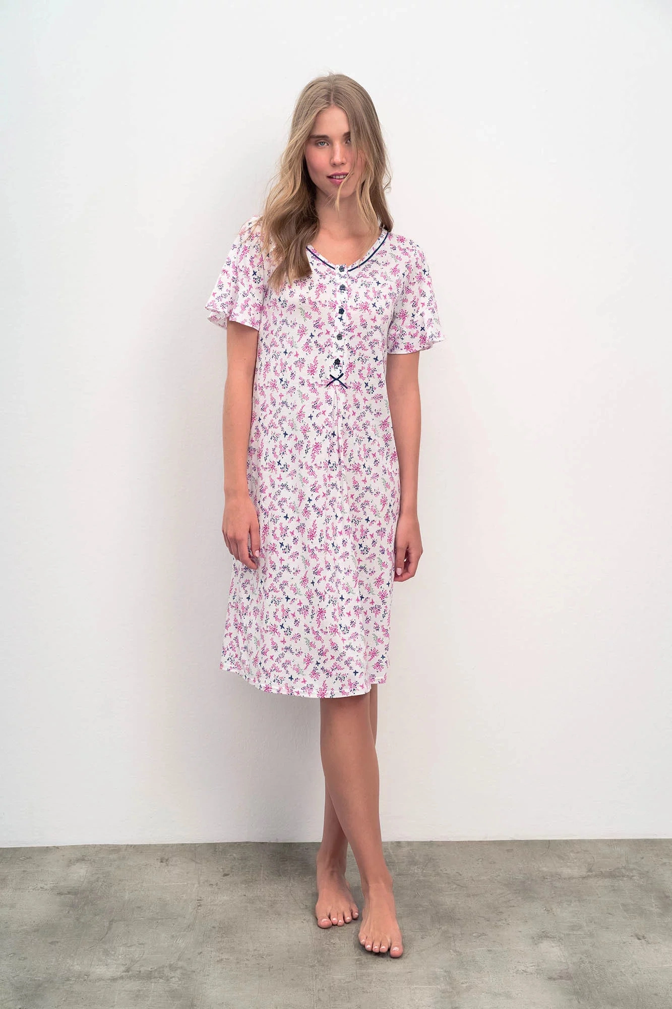 Dámska nočná košeľa Vamp - výstrih do V - dlhý rukáv - tlačidlá Zloženie materiálu: 100 % bavlna