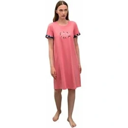 Pohodlná dámska nočná košeľa pre sladký spánok a krásu.košeľa má okrúhly výstrih a na rukáve je zdobená lemom. Prednú stranu košele zdobí jemná potlač. Táto dámska košieľka je vyrobená z vysokokvalitnej kombinácie gréckej bavlny bez GMO a elastanu. Táto kombinácia zaručuje vysoký komfort, príjemný dotyk, priedušnosť, pružnosť a odolnosť. Dĺžka nočnej košele je 95 cm.