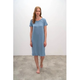 Košeľa s krátkym rukávom a okrúhlym výstrihom, zdobená čipkou. Dĺžka po kolená.