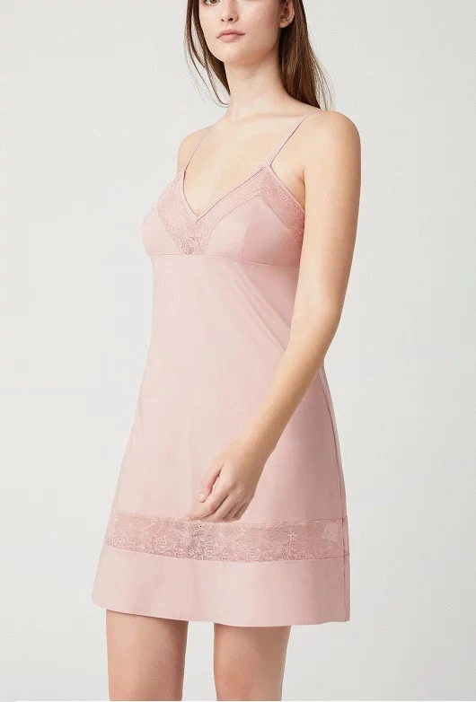 Dámska luxusná nočná košeľa bez ramienok s čipkou na výstrihu a leme.
