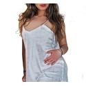 Klasická nočná košieľka je vyrobená zo vzorovaného saténu. Model na tenkých a regulovateľných ramienkach má výstrih v tvare V. Košieľka je veľmi príjemná.
