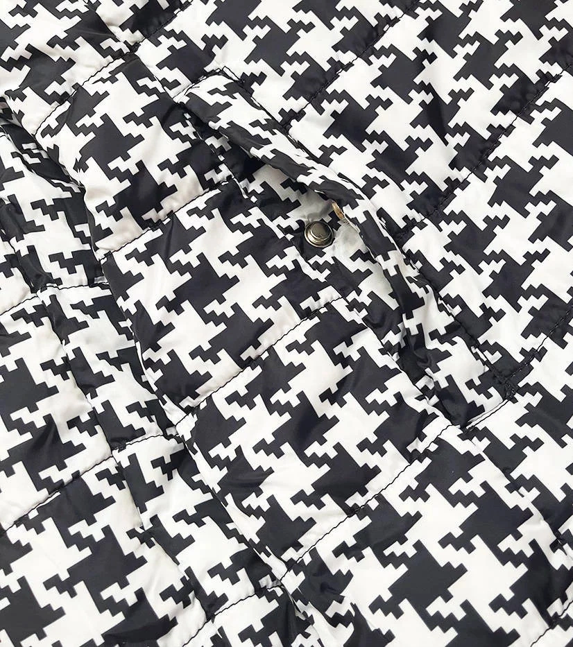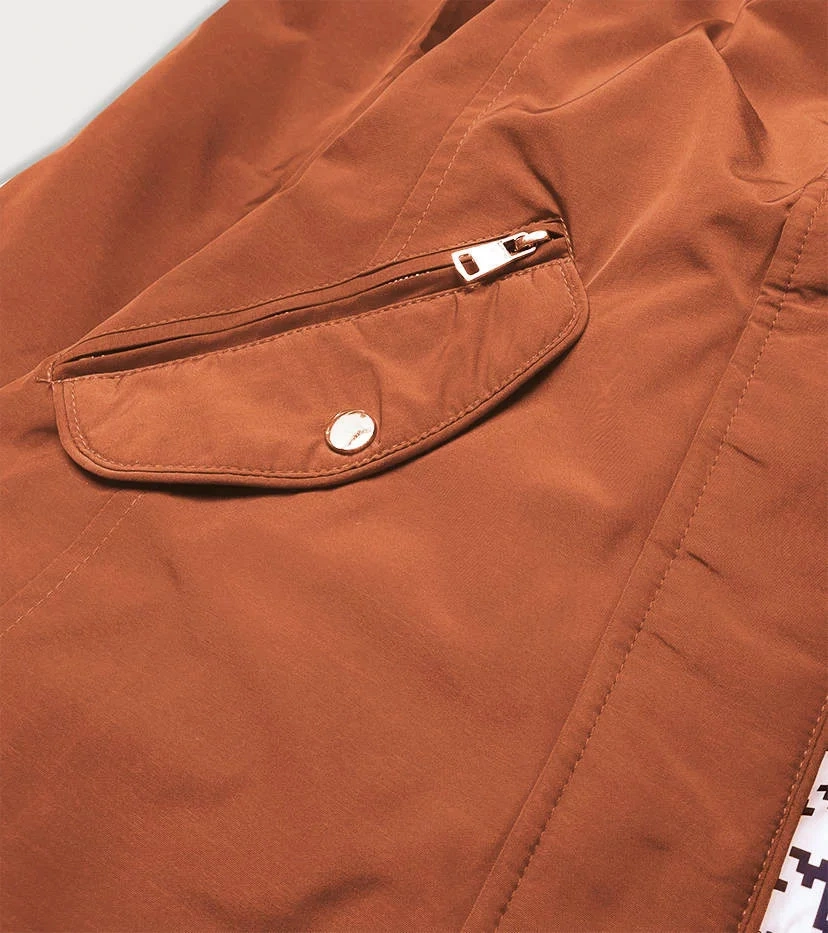 Bunda je ľahko zateplená syntetickým páperím. Jedna strana bundy je hladká a druhá je jemne prešívaná. Model má kapucňu, ktorá sa nedá odopnúť. Vzadu v páse modelu je elastický pás. Na každej strane bundy sú dve vrecká. Všetky zipsy a patentky sú striebornej farby.