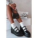 Poltopánky z ekokože sú pohodlnou a elegantnou voľbou na každý deň. Model s klinovou podrážkou poskytuje pohodlie a zvýrazňuje postavu. Dva remienky v prednej časti sú decentným, ozdobným akcentom a zdôrazňujú ženský charakter topánok. Tieto poltopánky sú ideálne na každodenné štylizácie, ako aj na elegantnejšie outfity.