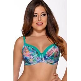 Košíčky sú mäkké, vystužené kosticami. Podprsenka má moderný farebný vzor.