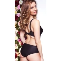Polovystužená podprsenka. Horná časť košíčka je vyrobená z krásnej výšivky, spodná časť košíčka je vystužená, hladká, potiahnutá čiernym mikrovláknom. Očarujúca saténová mašľa medzi košíčkami. Neodnímateľné, nastaviteľné ramenné popruhy so šírkou odstupňovanou podľa veľkosti (12 mm, 16 mm, 22 mm). Zapínanie na háčiky a očká na chrbte s trojcestným nastavením (dvojradové alebo trojradové, v závislosti od veľkosti).