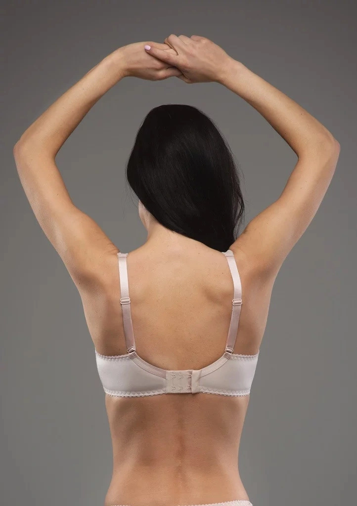 Dámska podprsenka značky Fantasy. Podprsenka je nevystužená. Košíčky má hladké av hornej časti je ozdobná čipka. Košíčky podprsenky sú podšité bavlnenou látkou, aby sa príjemne nosila. Uprostred košíčkov je strieborná ozdoba so štrasovým kamienkom. Ramienka začínajú z bočnej strany od košíčkov, kde je mierna výstuž a ďalej pokračujú do širokých ramienok, ktoré sa nikde nezarezávajú a sú veľmi pohodlné. Ramienka sú dĺžkovo nastaviteľné. Podprsenka má bočnú výstuž, aby perfektne sedela aj na väčšie poprsie a dobre držala. Bočná časť je hladká. Zapínanie je na dva háčiky av troch radoch.