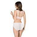 Vnitřní strana košíčků je opatřena měkkou, pokožce na dotek příjemnou pěnou. Vnější stranu halí krajka dodávající podprsence jedinečný vzhled. Horní linie košíčků je z lehkého tylu, elegantně prodloužená krajka nad nimi přidává podprsence nádech luxusu. Ramínka jsou nastavitelná, neodnímatelná. Díky elastickému obvodu bez svislých výztuh je tato podprsenka mimořádně pohodlná i při celodenním nošení. Zapínání na klasické háčky na zadní straně.