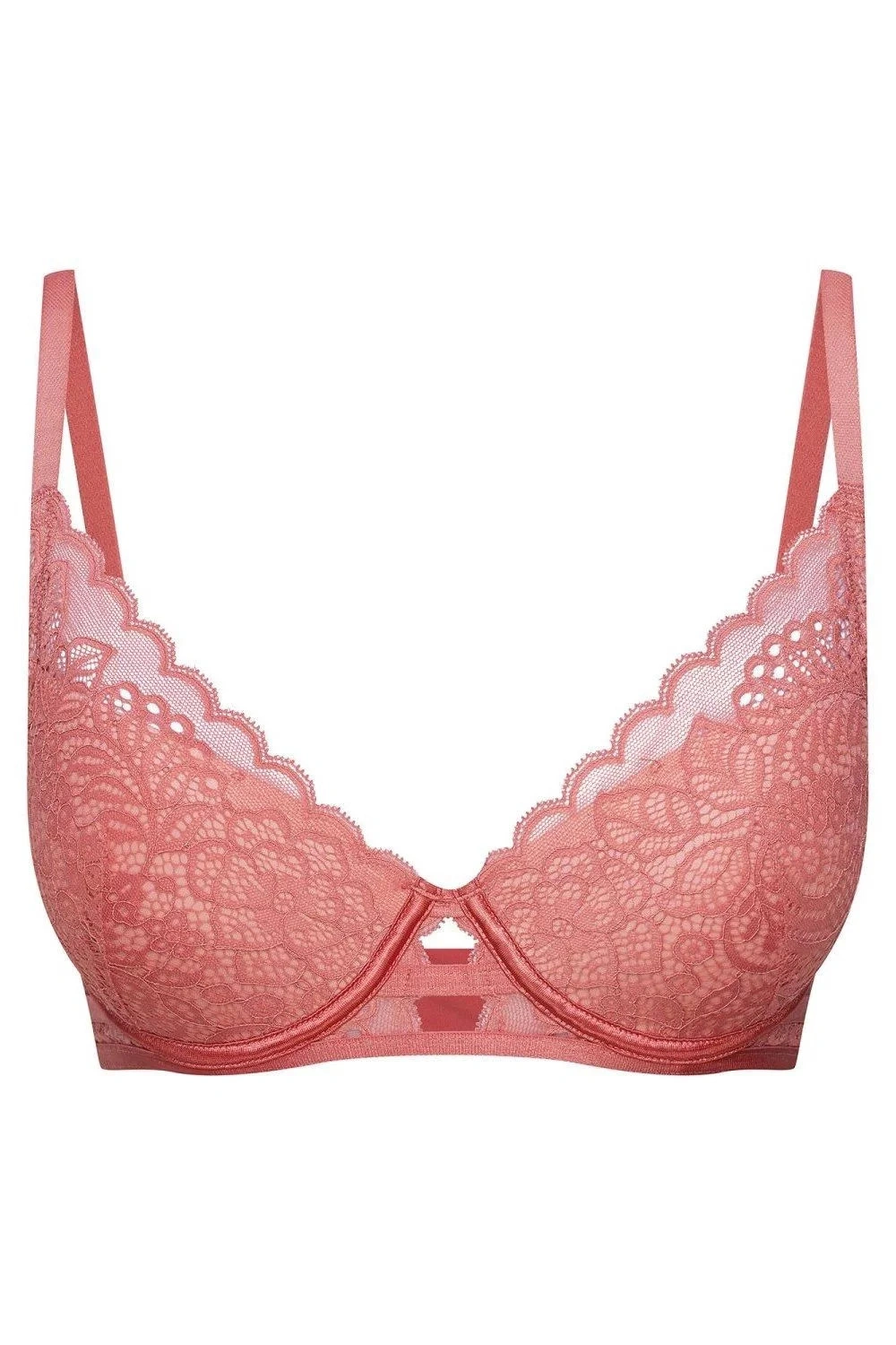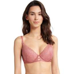 Dámska podprsenka 40659 Hint8 HENDERSON - ružová farba - push up košíčky - kostice - košíčky zdobené tylovou čipkou s kvetinovým motívom - vyberateľné vypchávky - nastaviteľné a neodnímateľné ramienka - zapínanie na dva háčiky a očká s trojstupňovým zapínaním